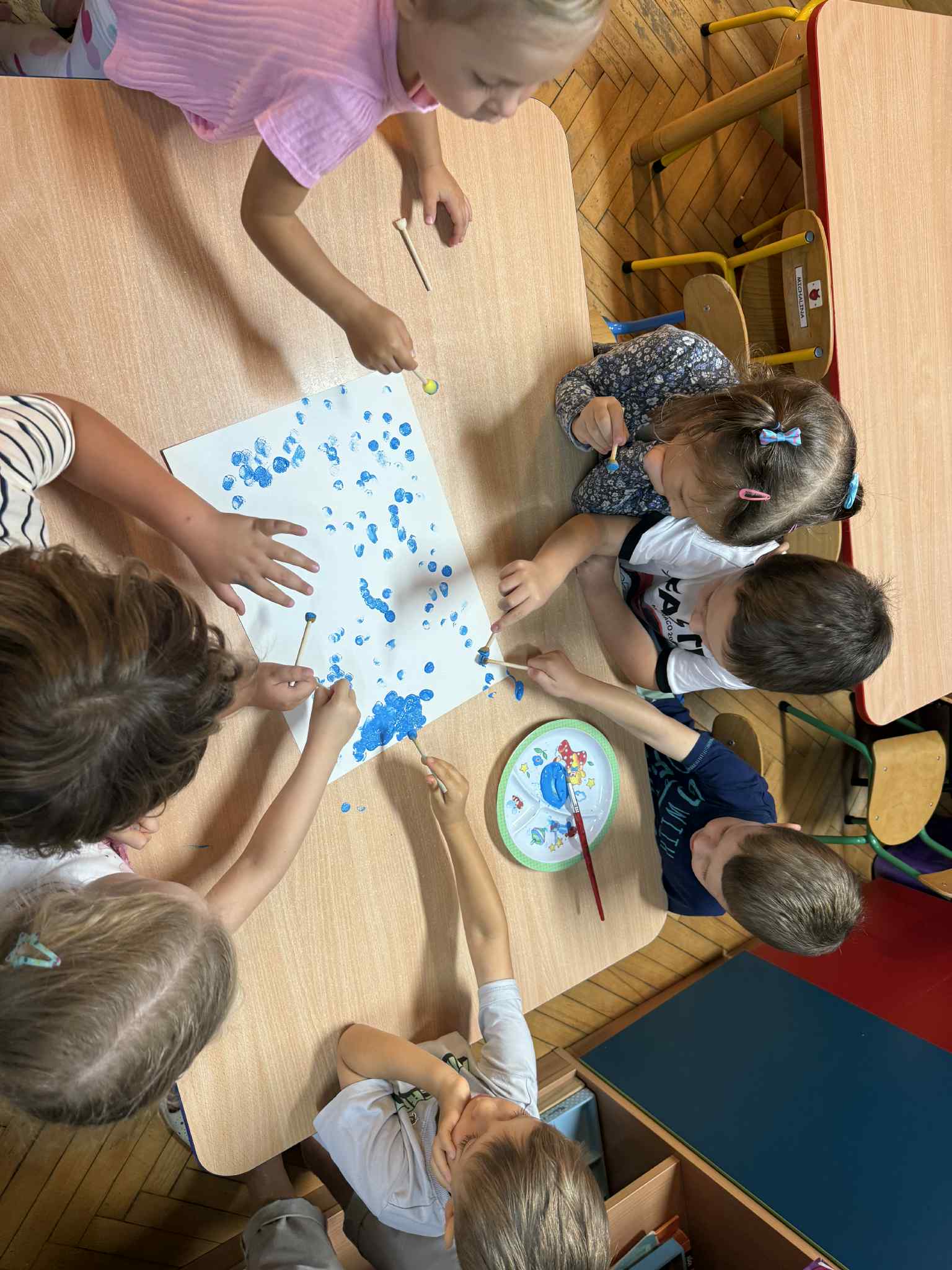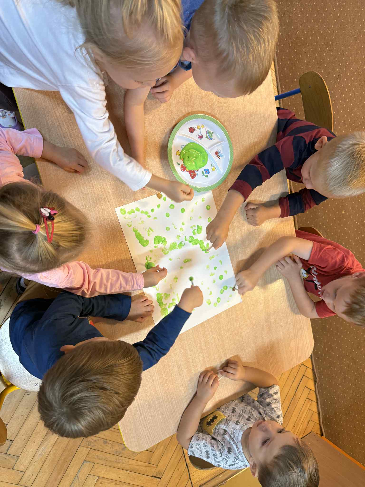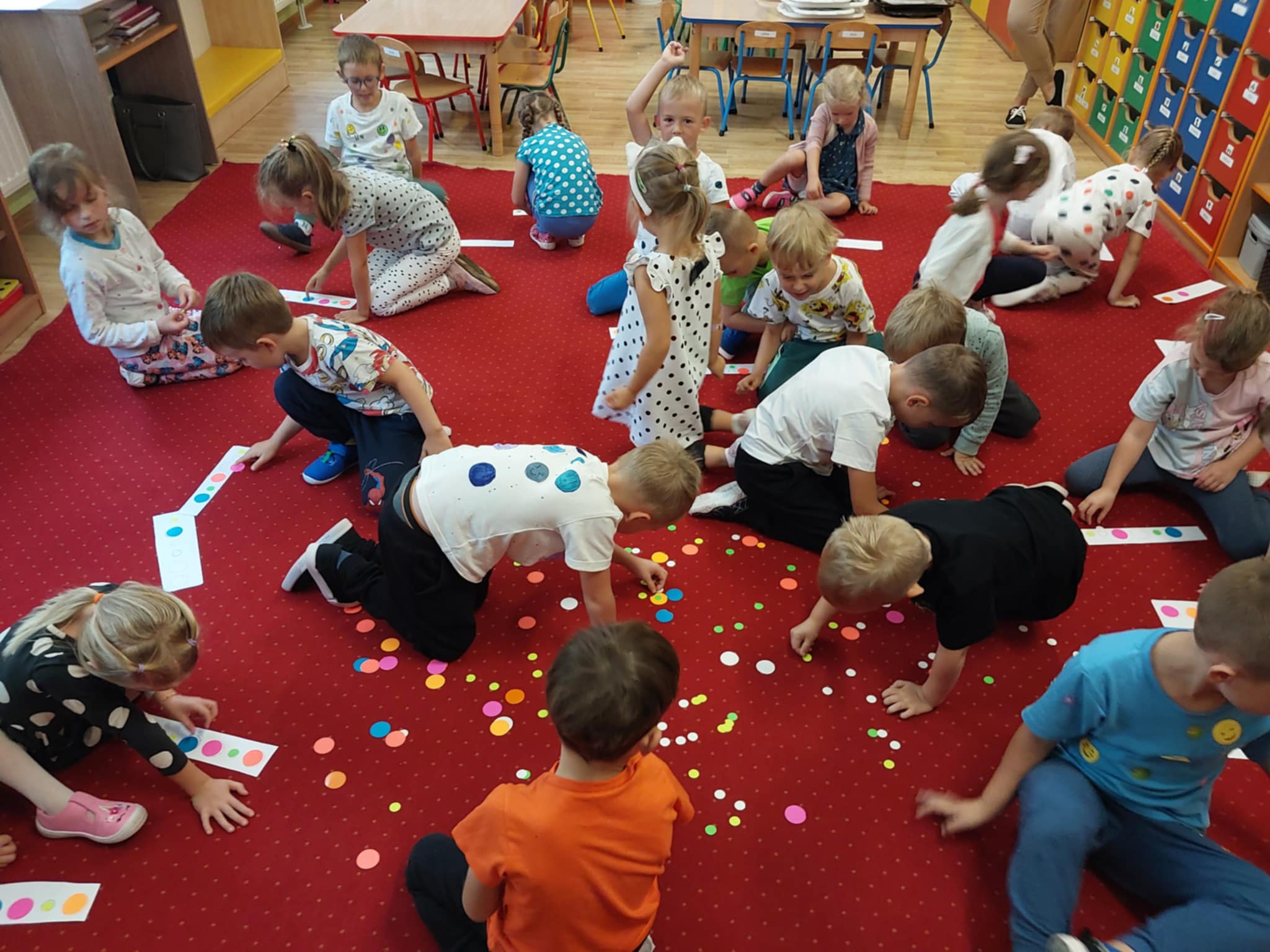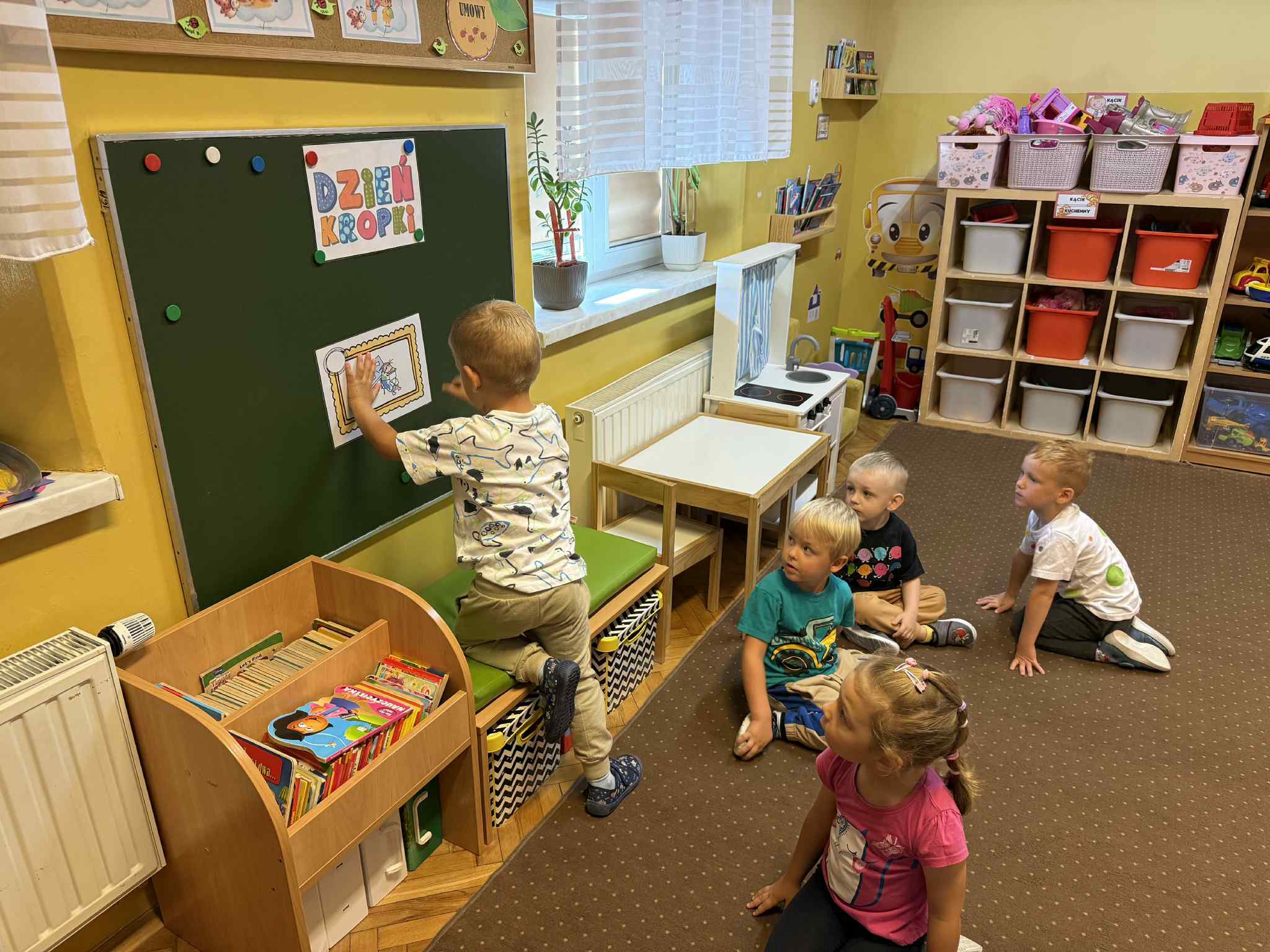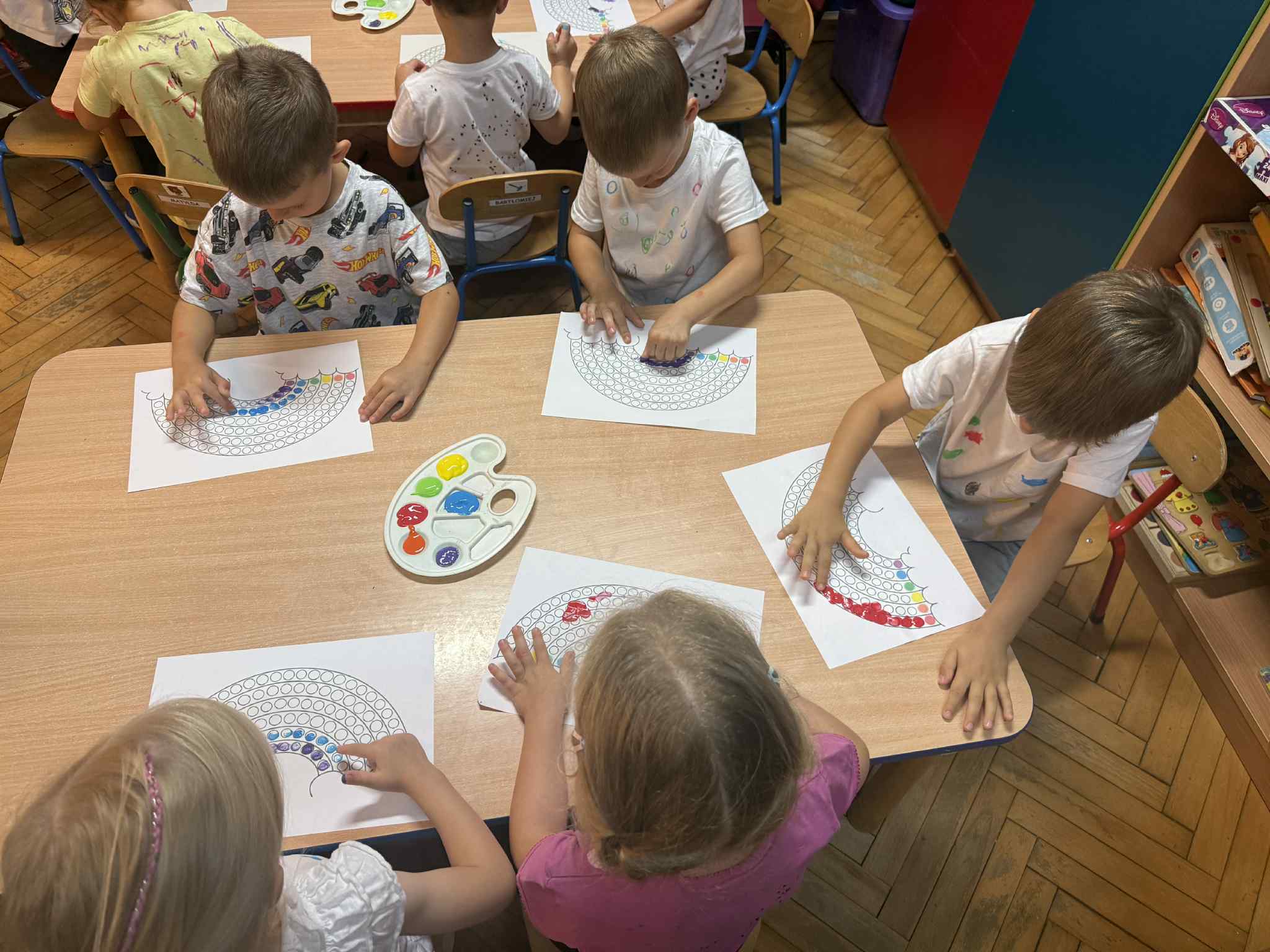 Nasze maluchy 15.09 obchodziły Międzynarodowy Dzień Kropki pełen twórczej zabawy i radości! Dzieci wysłuchały opowiadania o Vashti, tworzyły własne, kolorowe podkoszulki w kropki, ćwiczyły przy „kropkowej gimnastyce”, układały gąsienice według wzoru i szukały kropek w ogrodzie. Na zakończenie malowały tęczę palcami, odkrywając, że każdy ma w sobie moc tworzenia i wyobraźni.