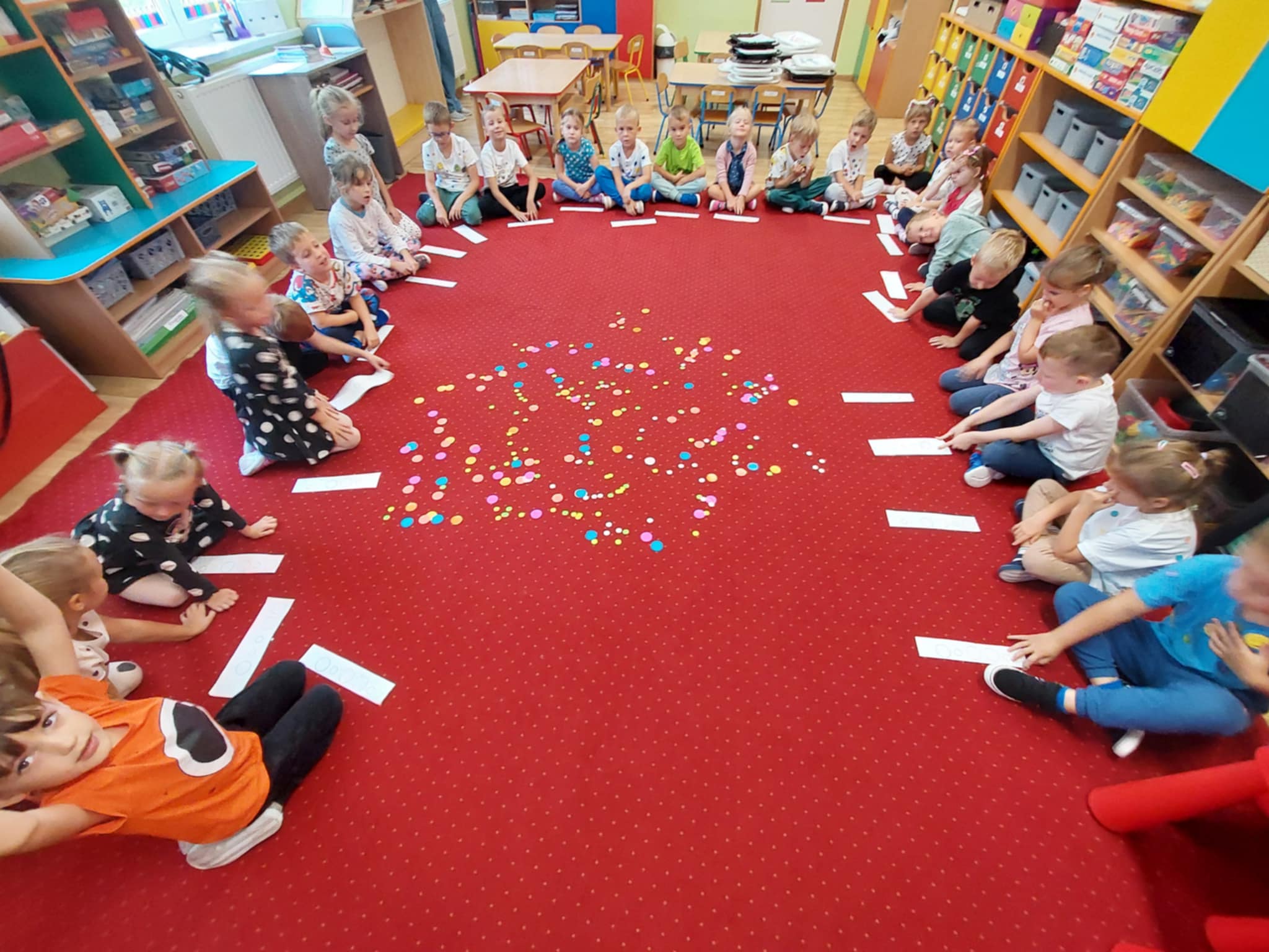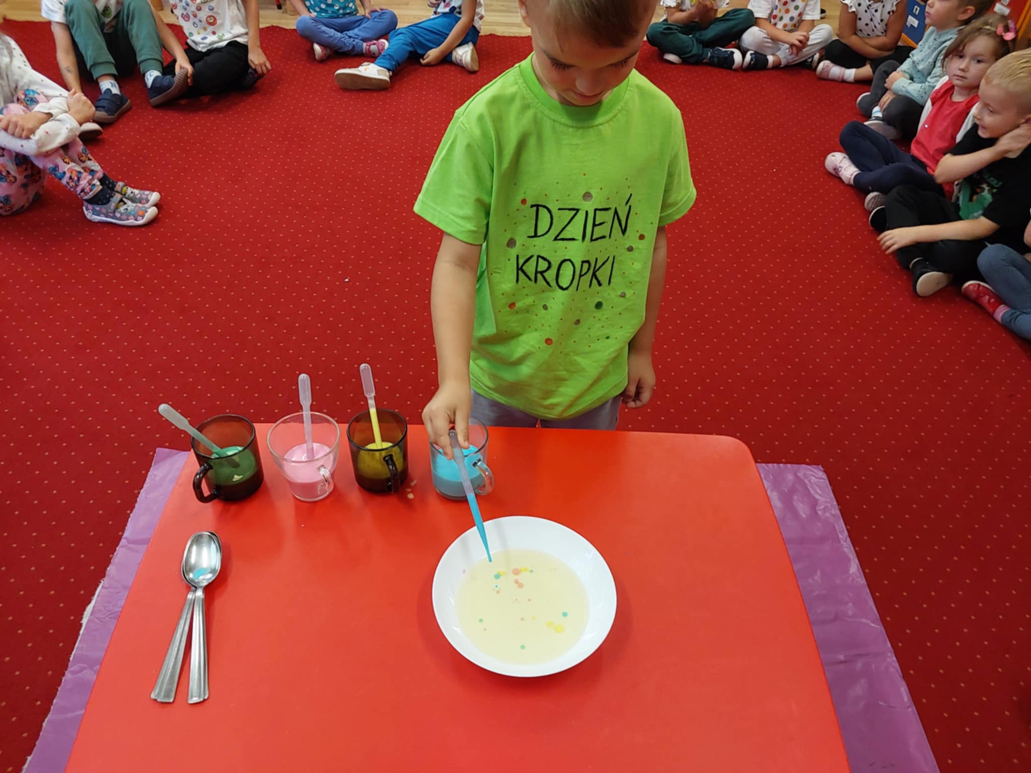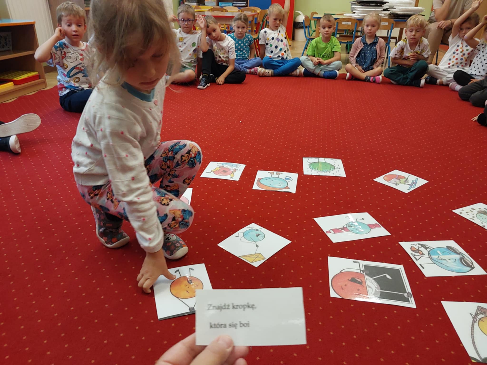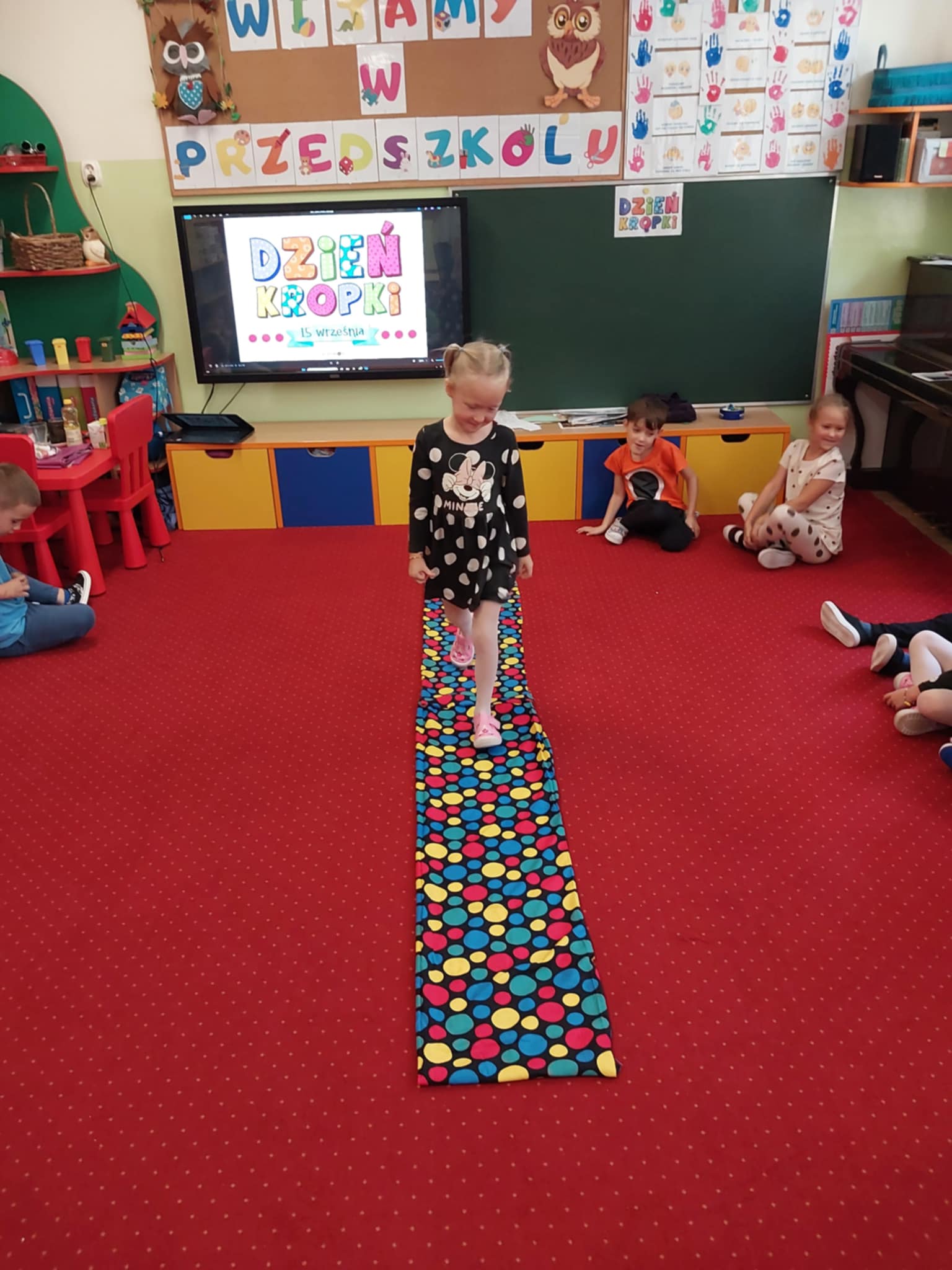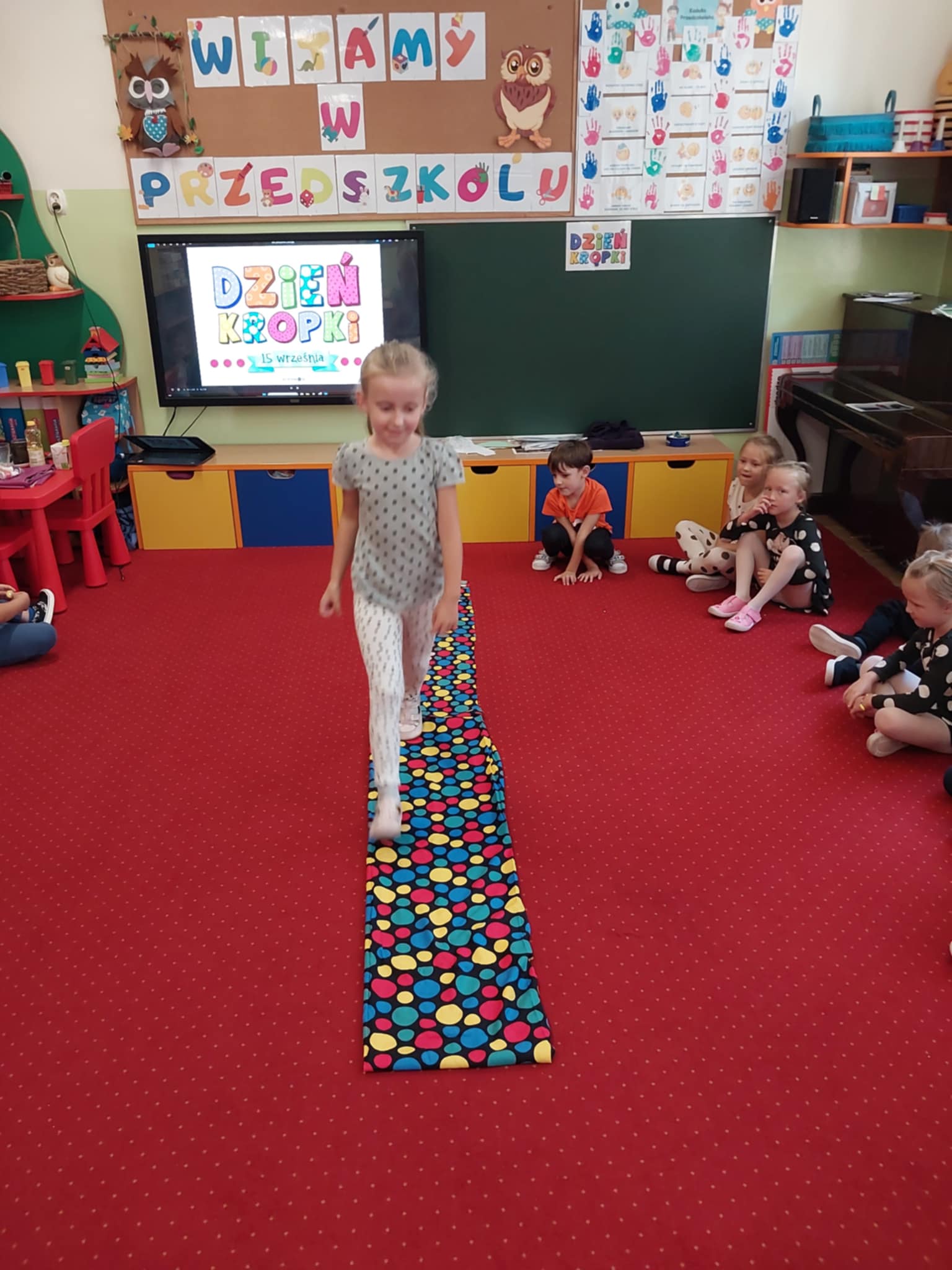 Straszaki z okazji dnia kropki brały udział w kropkowym pokazie mody prezentując swoje mocne strony, cechy charakteru i zainteresowania. Dzieci kodowały kropki, rozwiązywały zagadki, malowały farbami, wykonywały kropkowy eksperyment oraz malowały swoją kropkę.