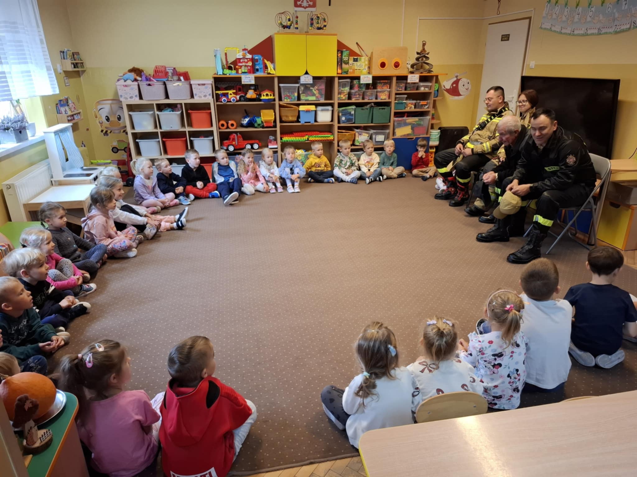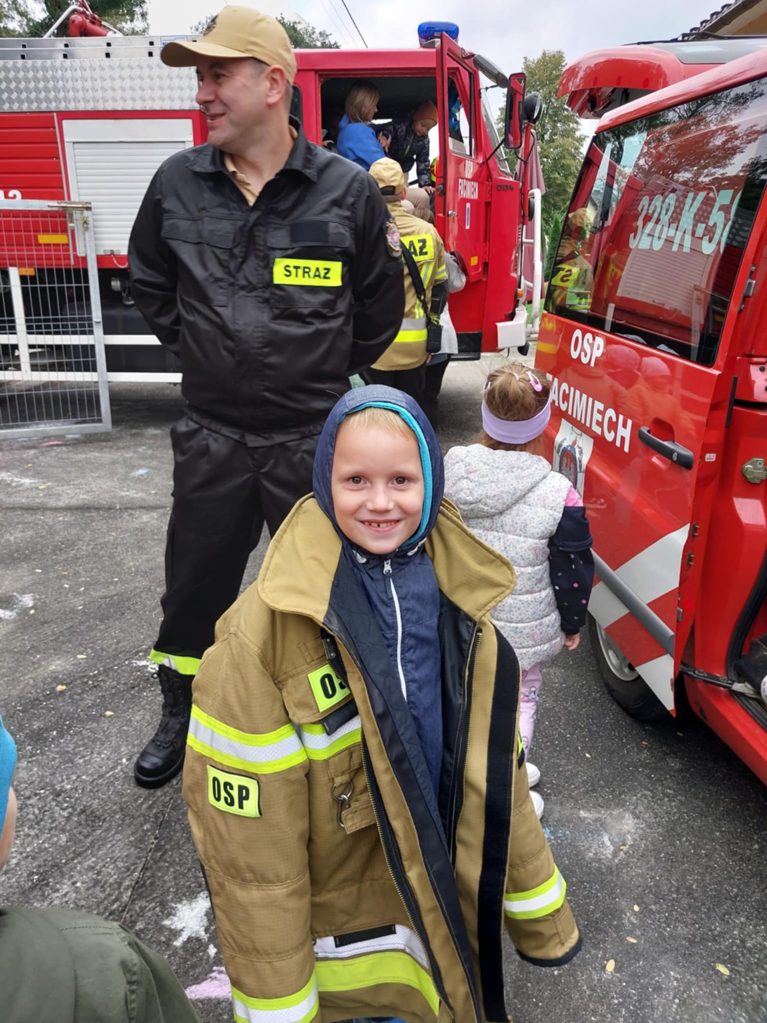 08.05 to dzień pełen emocji i wrażeń dla Przedszkolaków, a to za sprawą wyjątkowej wizyty strażaków. Z wdzięcznością za ich codzienny trud, dzieci przygotowały inscenizację o Strażaku Stasiu, zaśpiewały piosenkę i wręczyły specjalne podziękowanie. Strażacy opowiedzieli o swojej odpowiedzialnej pracy, pokazali wyposażenie wozu strażackiego, a chętne dzieci mogły przymierzyć hełmy i elementy strażackiego stroju. To była niezapomniana lekcja odwagi, poświęcenia i wzajemnego szacunku.