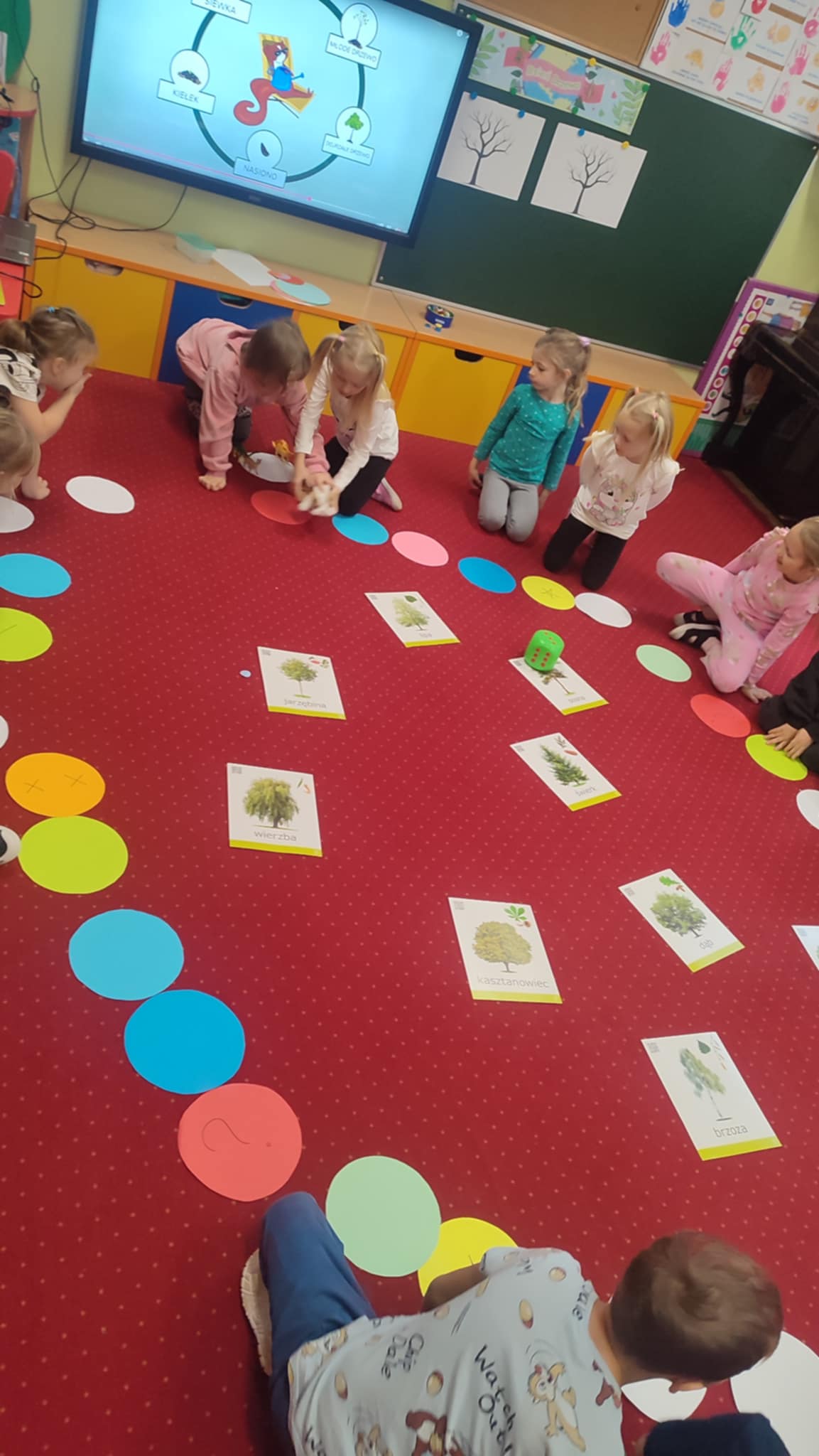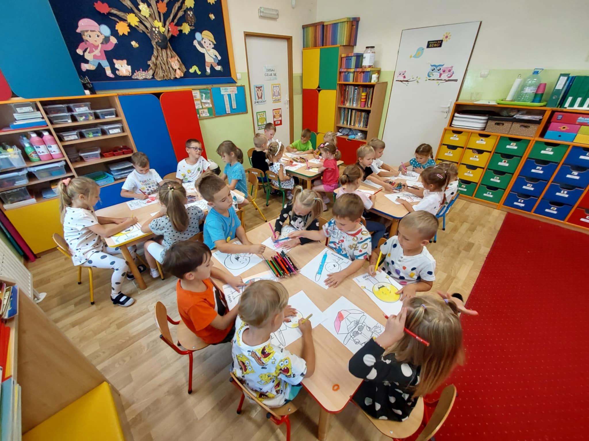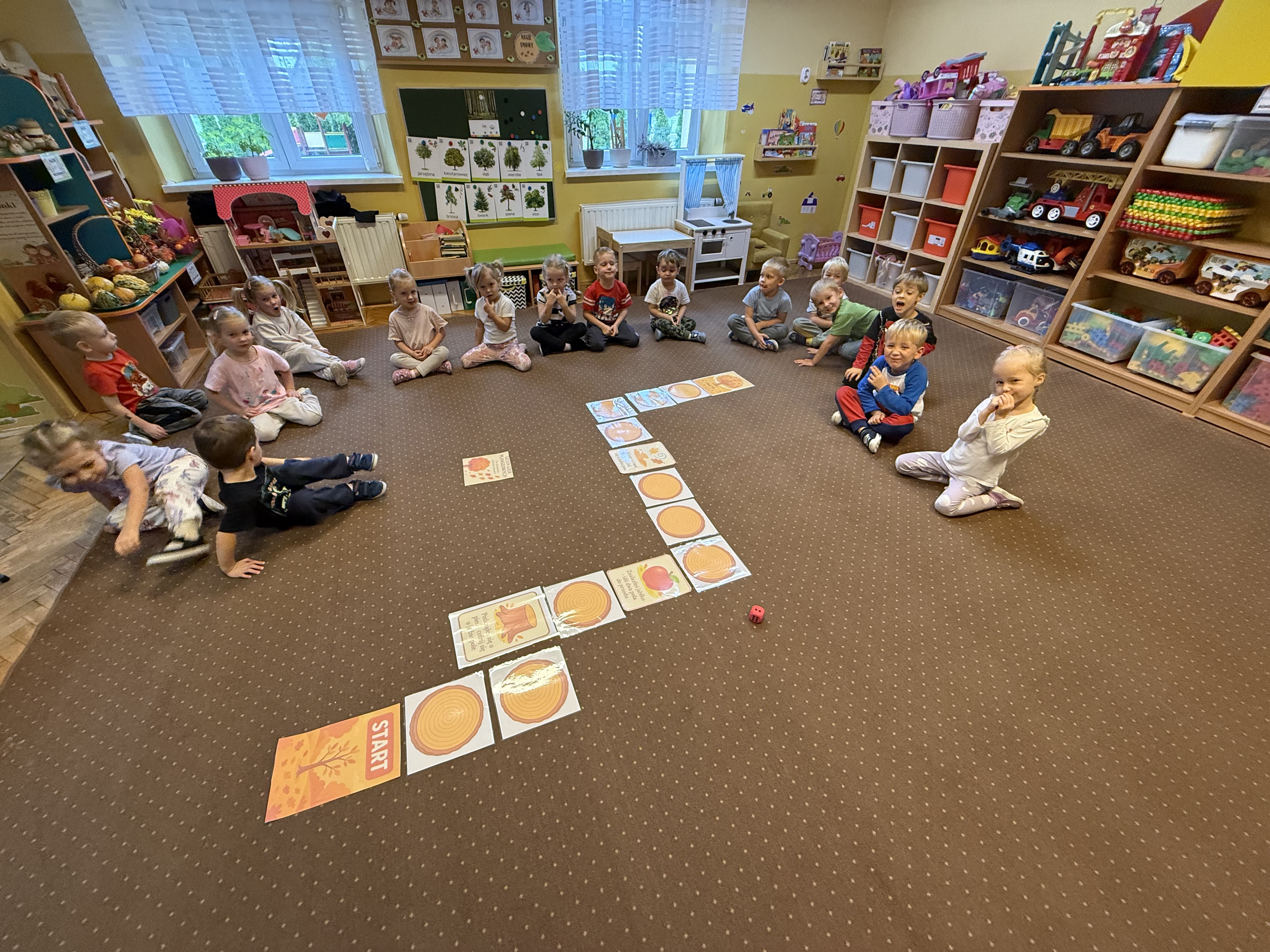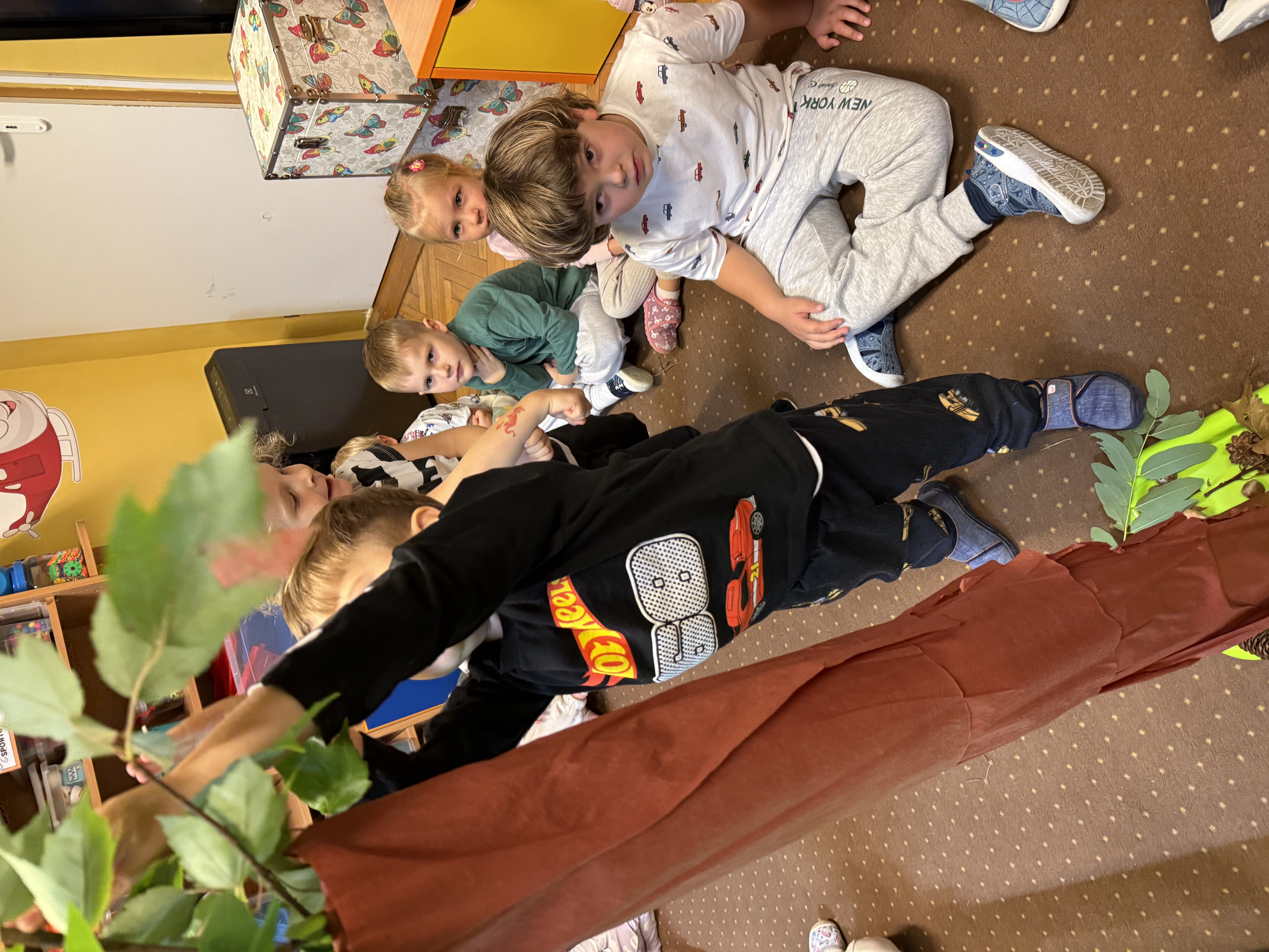Z okazji Dnia Drzewa 10.10.2025 grupa Biedronek i Sówek wyruszyła w niezwykłą podróż do świata przyrody! Dzieci poznały różne gatunki drzew, nauczyły się rozpoznawać ich owoce oraz zapoznały się z budową drzewa. W trakcie spaceru na zewnątrz przytulały drzewa, wsłuchując się w odgłosy natury, oraz zbierały liście, z których później powstały piękne prace plastyczne – „Nasze drzewka”. Wspólnymi siłami przedszkolaki stworzyły także grupowe drzewo Biedronek, symbolizujące przyjaźń i współpracę. Po pełnym wrażeń dniu na dzieci czekał słodki poczęstunek. Ten wyjątkowy dzień połączony był również z Dniem Gier Planszowych – starszaki z zaangażowaniem grały w grę o drzewach, a popołudnie upłynęło wszystkim na wspólnych grach i zabawach grupowych. Maluszki zagrały w grę planszową XXL pt.: "Wyprawa po liście". Był to dzień pełen wiedzy, radości i wspólnej zabawy – prawdziwe święto drzew i przyjaźni!