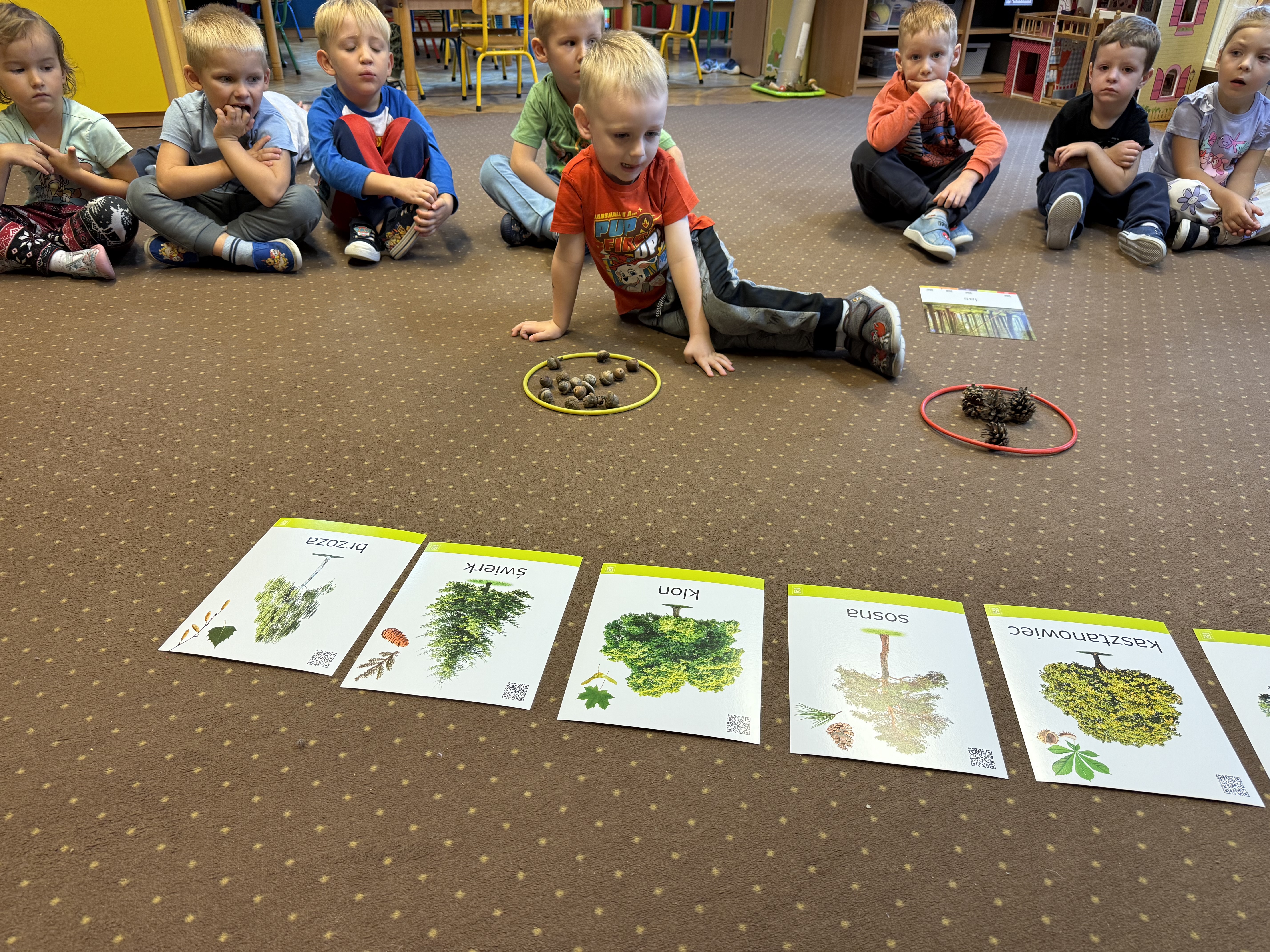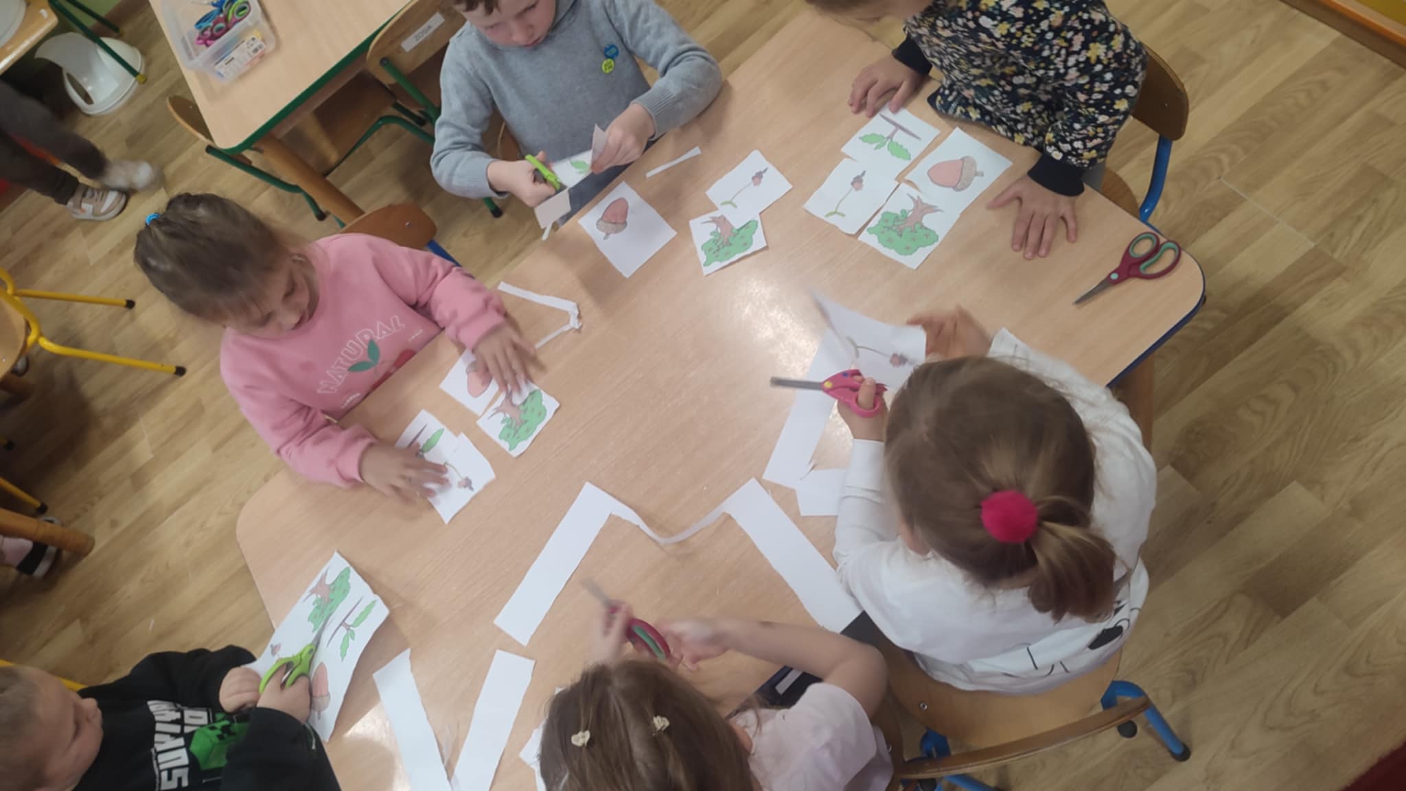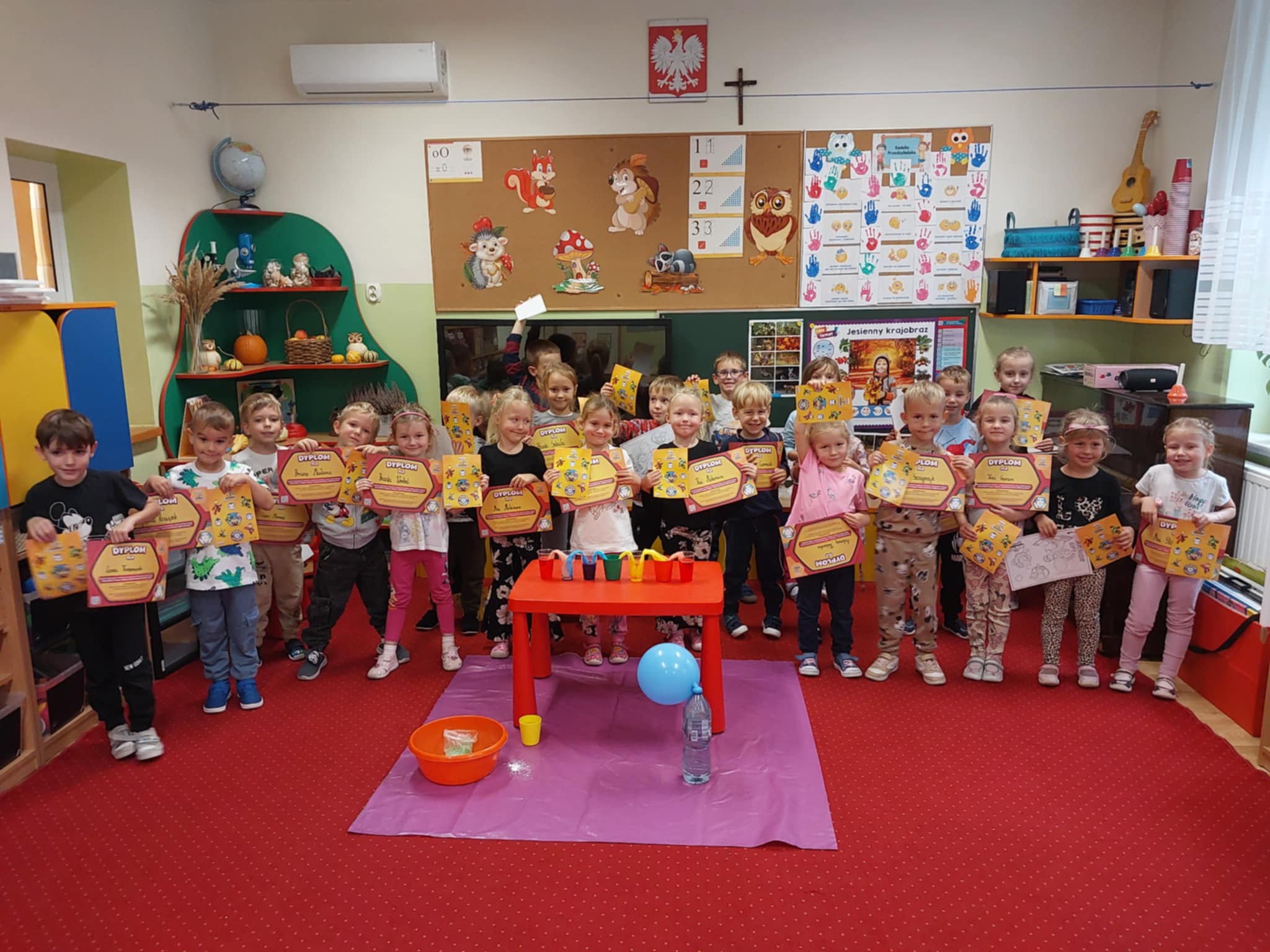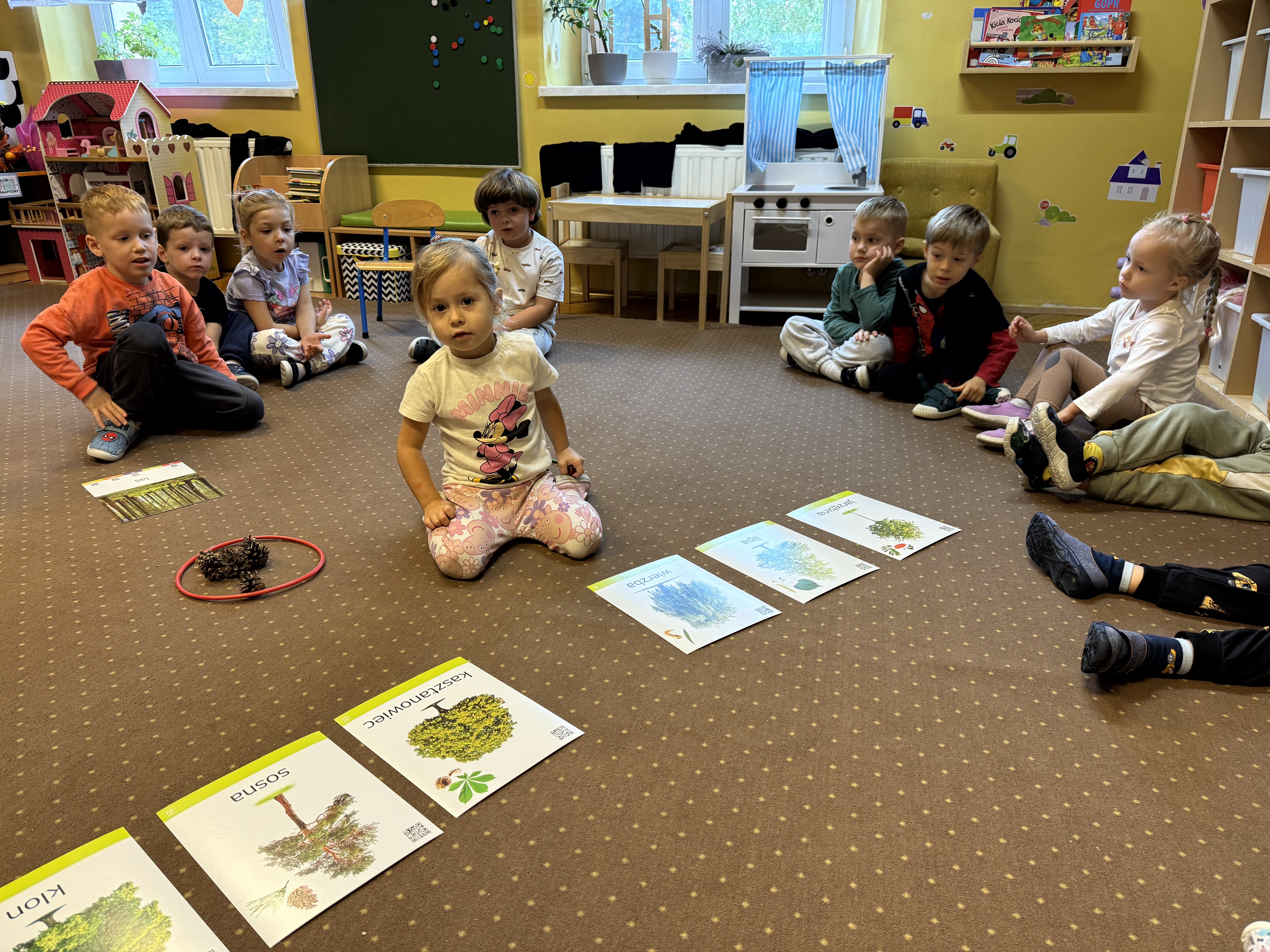 Z okazji Dnia Drzewa 10.10.2025 grupa Biedronek i Sówek wyruszyła w niezwykłą podróż do świata przyrody! Dzieci poznały różne gatunki drzew, nauczyły się rozpoznawać ich owoce oraz zapoznały się z budową drzewa. W trakcie spaceru na zewnątrz przytulały drzewa, wsłuchując się w odgłosy natury, oraz zbierały liście, z których później powstały piękne prace plastyczne – „Nasze drzewka”. Wspólnymi siłami przedszkolaki stworzyły także grupowe drzewo Biedronek, symbolizujące przyjaźń i współpracę. Po pełnym wrażeń dniu na dzieci czekał słodki poczęstunek. Ten wyjątkowy dzień połączony był również z Dniem Gier Planszowych – starszaki z zaangażowaniem grały w grę o drzewach, a popołudnie upłynęło wszystkim na wspólnych grach i zabawach grupowych. Maluszki zagrały w grę planszową XXL pt.: "Wyprawa po liście". Był to dzień pełen wiedzy, radości i wspólnej zabawy – prawdziwe święto drzew i przyjaźni!