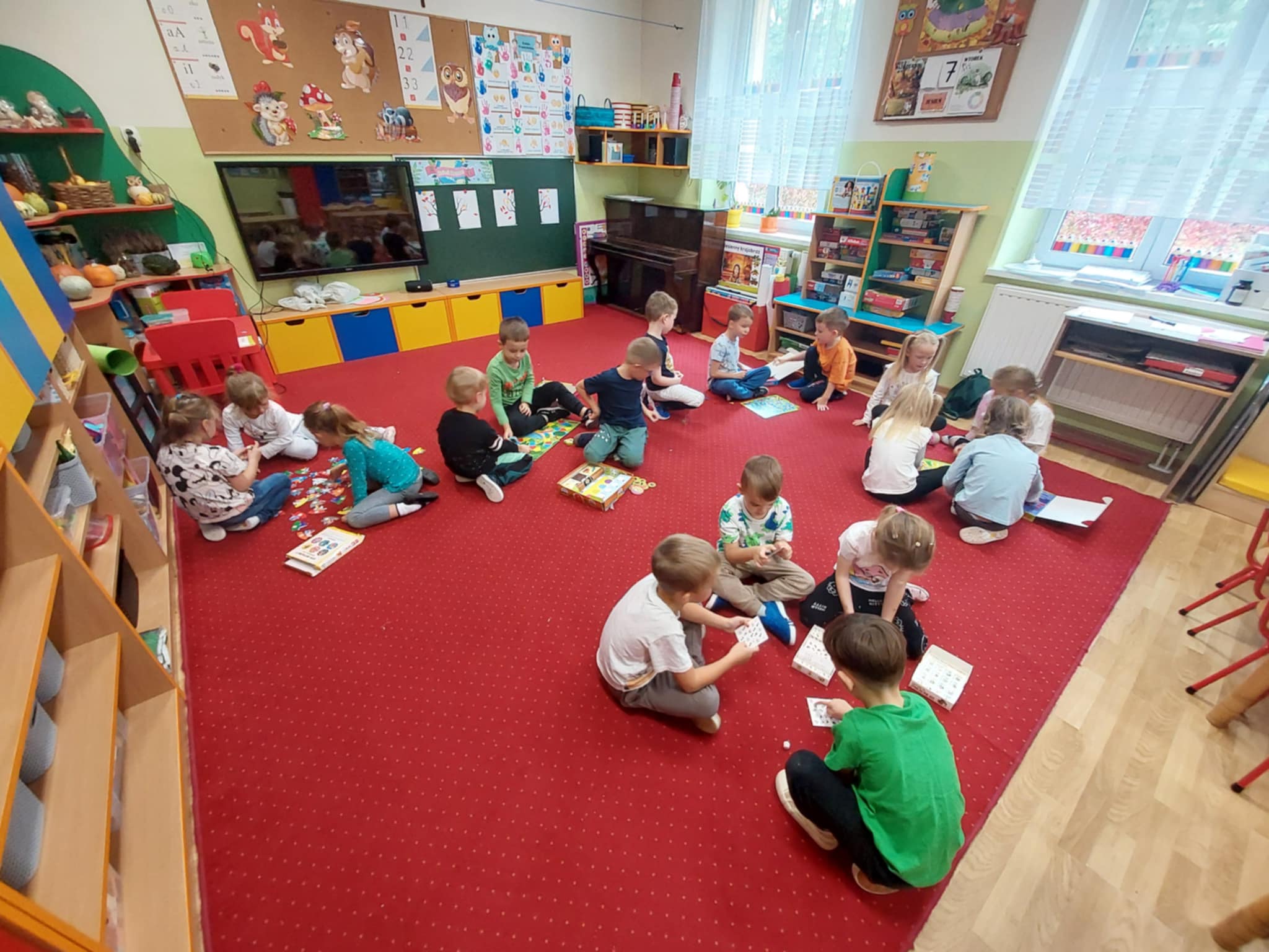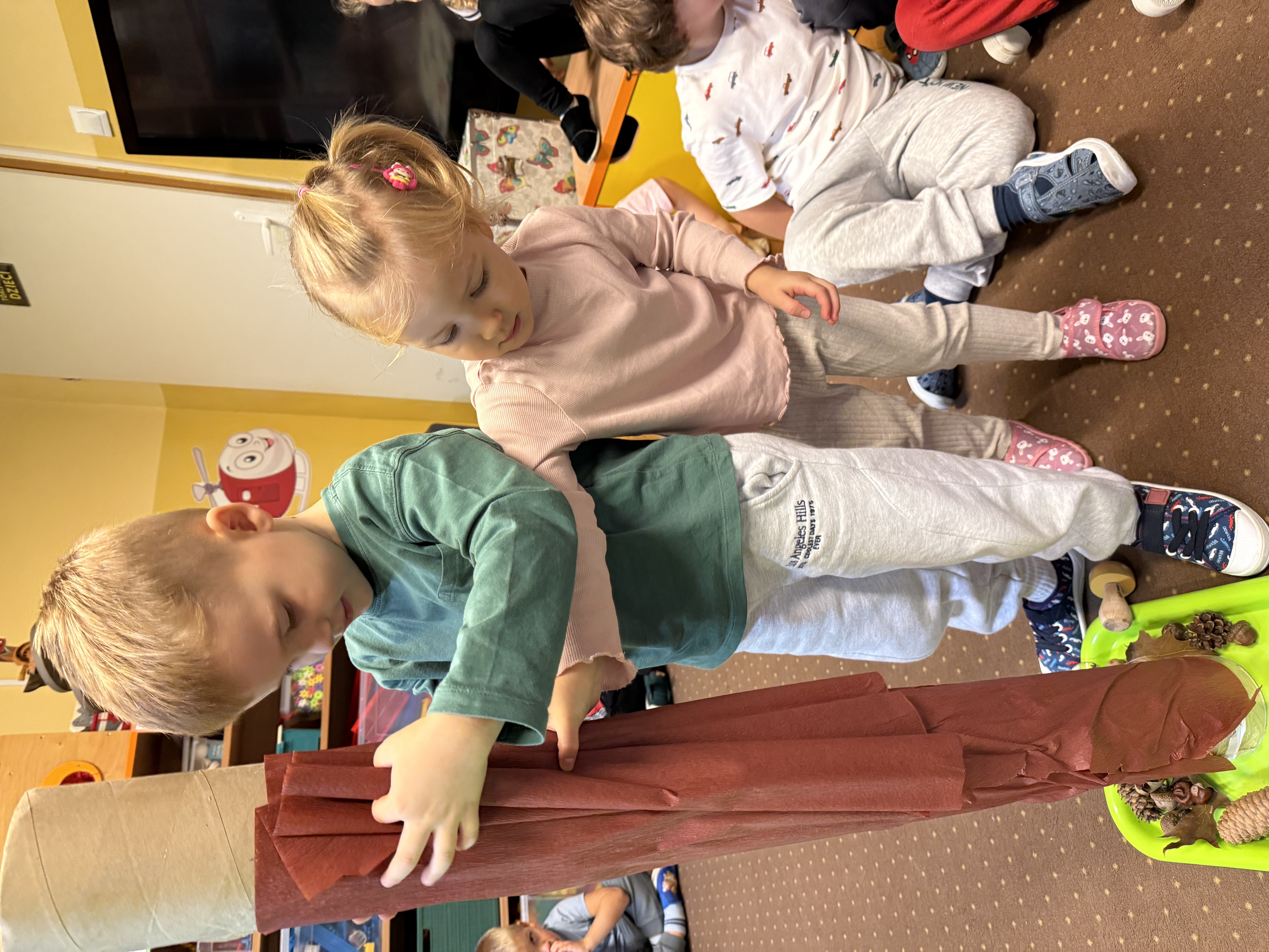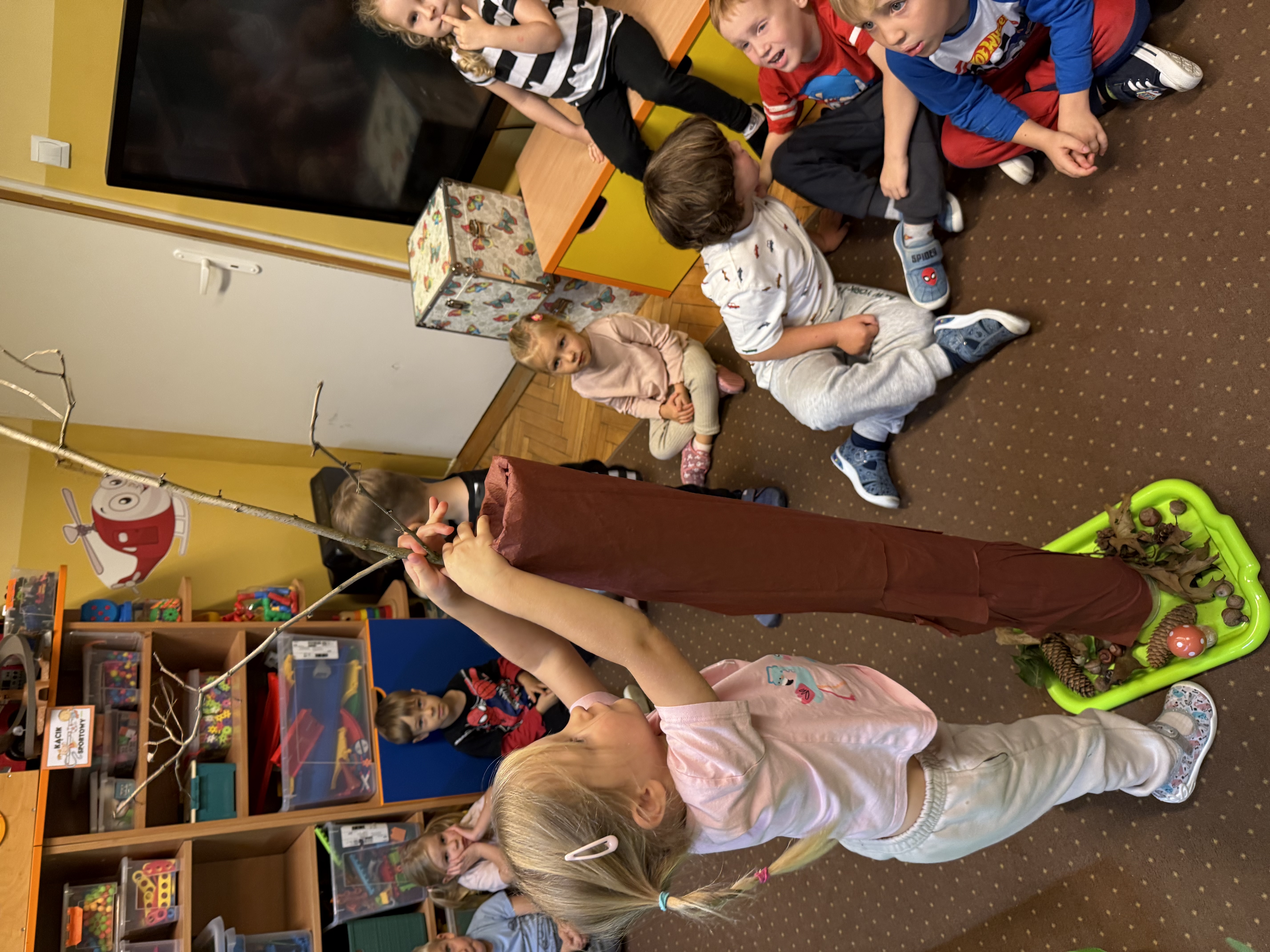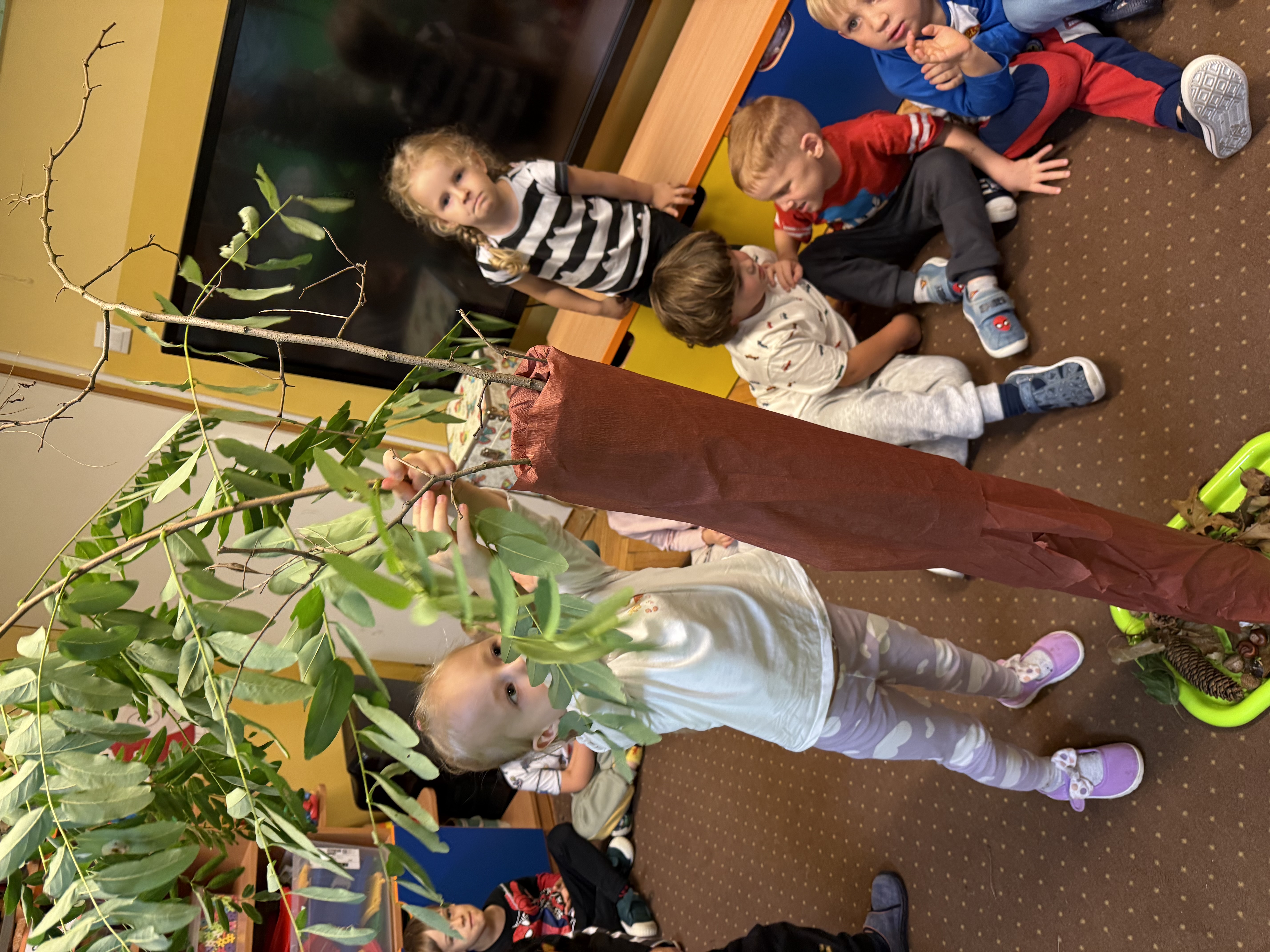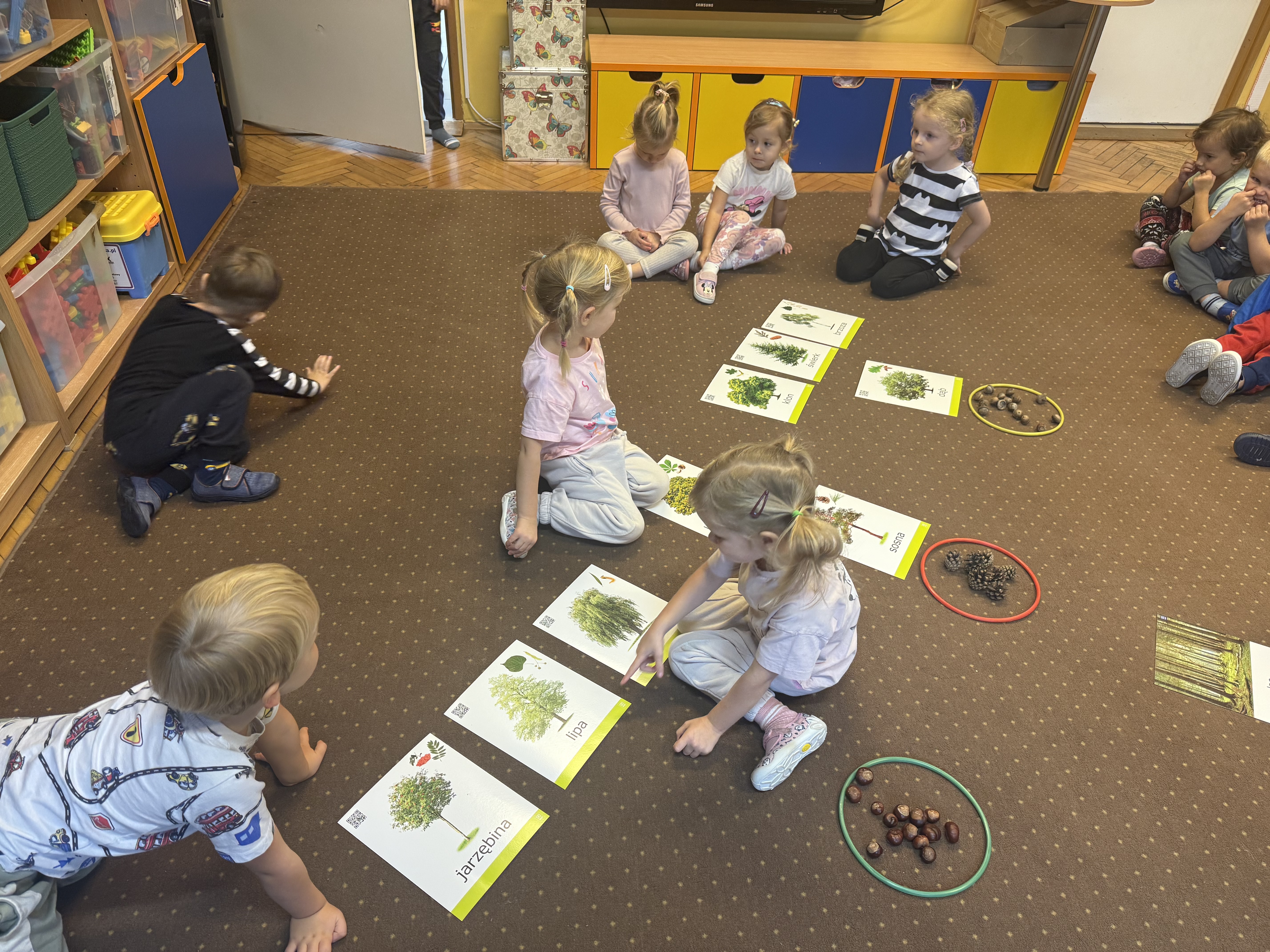 Z okazji Dnia Drzewa 10.10.2025 grupa Biedronek i Sówek wyruszyła w niezwykłą podróż do świata przyrody! Dzieci poznały różne gatunki drzew, nauczyły się rozpoznawać ich owoce oraz zapoznały się z budową drzewa. W trakcie spaceru na zewnątrz przytulały drzewa, wsłuchując się w odgłosy natury, oraz zbierały liście, z których później powstały piękne prace plastyczne – „Nasze drzewka”. Wspólnymi siłami przedszkolaki stworzyły także grupowe drzewo Biedronek, symbolizujące przyjaźń i współpracę. Po pełnym wrażeń dniu na dzieci czekał słodki poczęstunek. Ten wyjątkowy dzień połączony był również z Dniem Gier Planszowych – starszaki z zaangażowaniem grały w grę o drzewach, a popołudnie upłynęło wszystkim na wspólnych grach i zabawach grupowych. Maluszki zagrały w grę planszową XXL pt.: "Wyprawa po liście". Był to dzień pełen wiedzy, radości i wspólnej zabawy – prawdziwe święto drzew i przyjaźni!