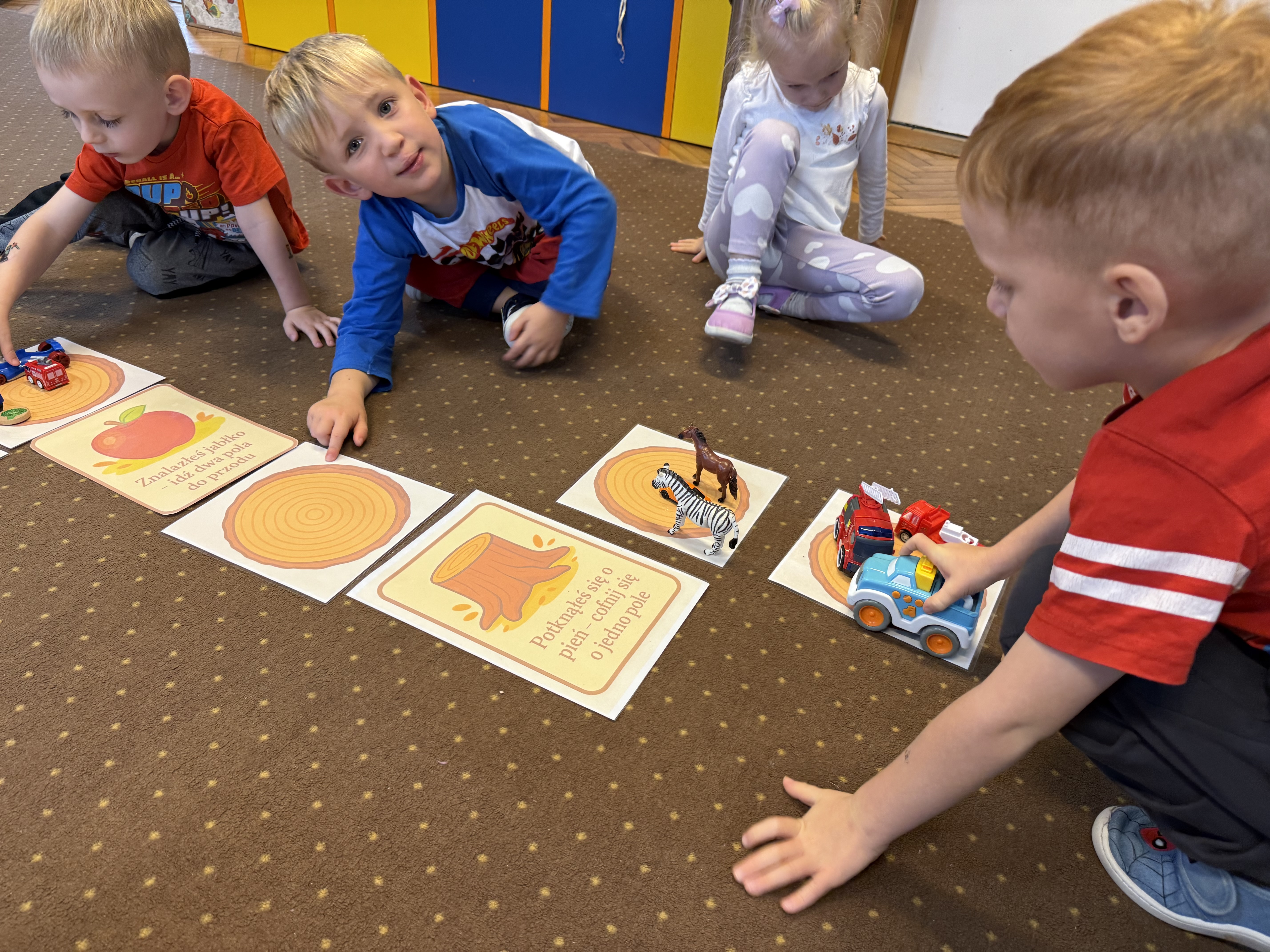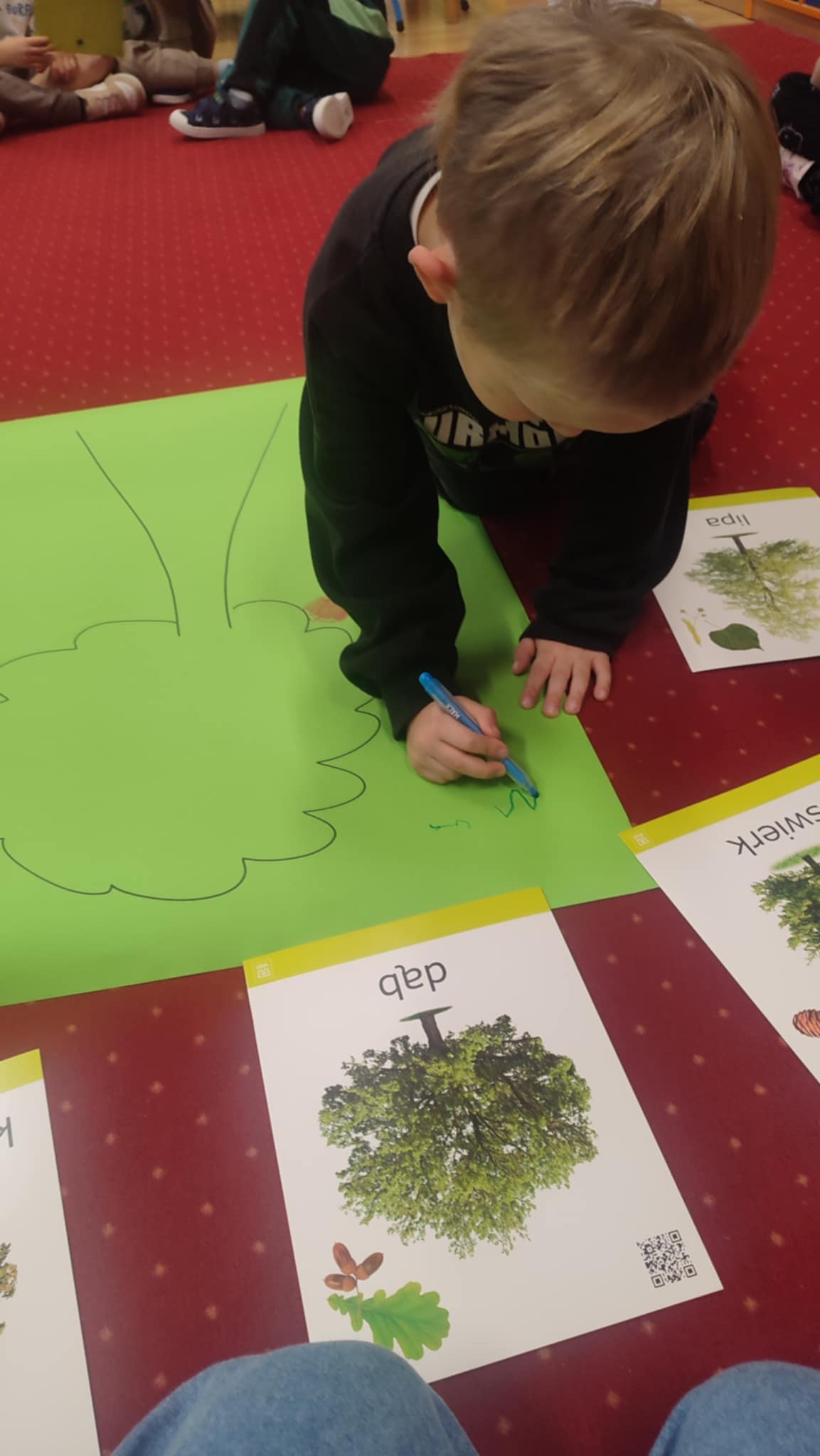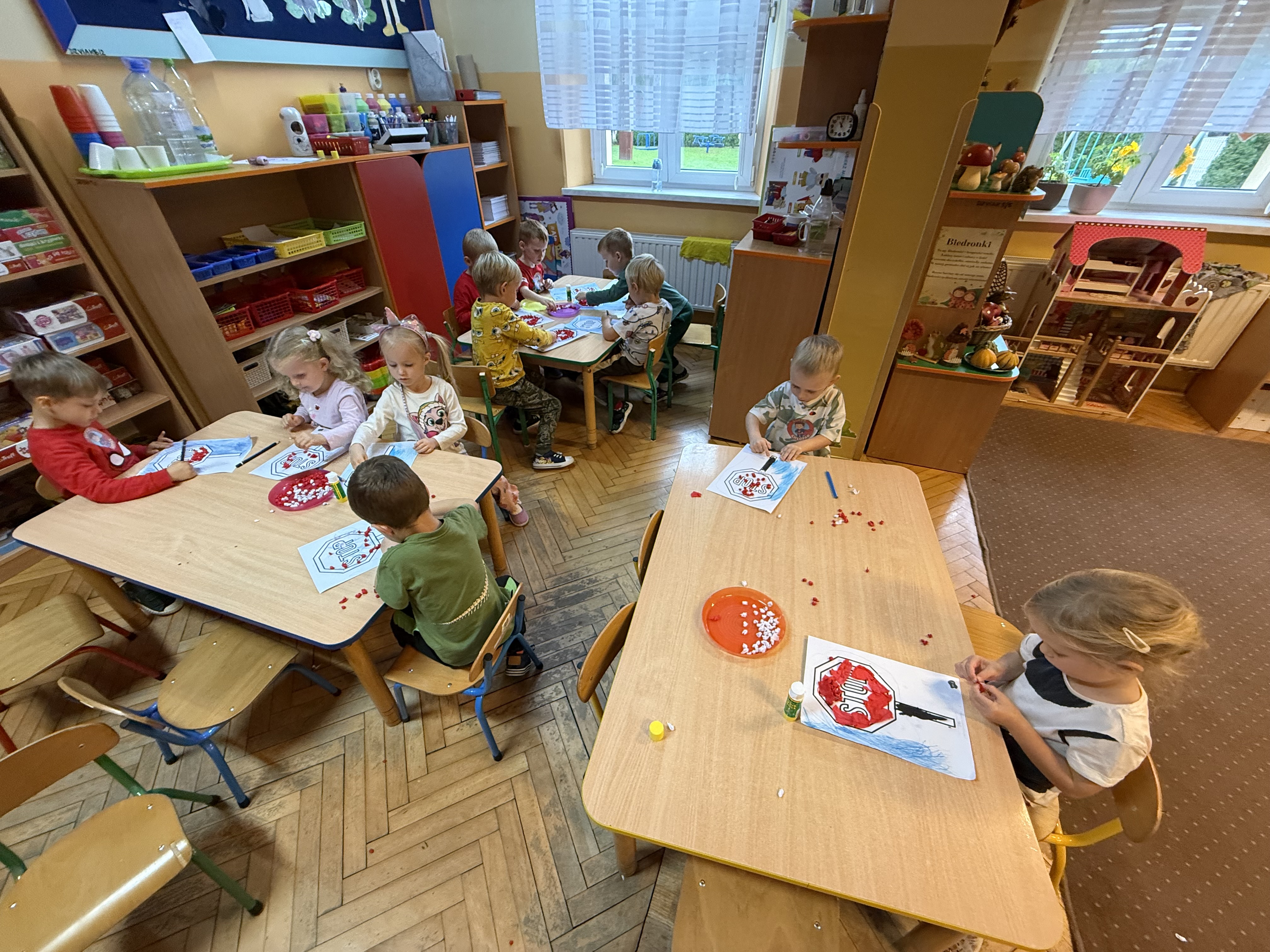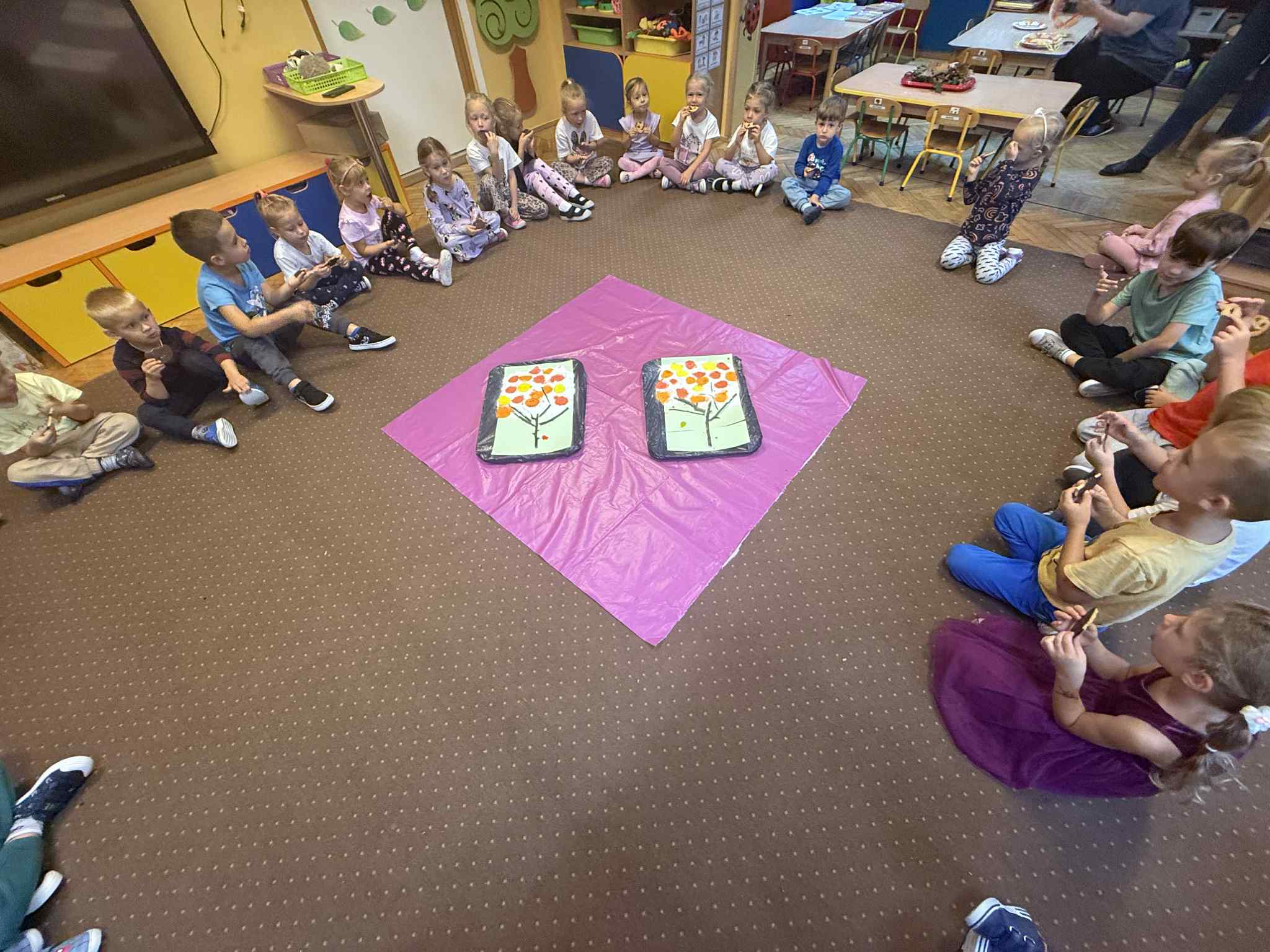 Z okazji Dnia Drzewa 10.10.2025 grupa Biedronek i Sówek wyruszyła w niezwykłą podróż do świata przyrody! Dzieci poznały różne gatunki drzew, nauczyły się rozpoznawać ich owoce oraz zapoznały się z budową drzewa. W trakcie spaceru na zewnątrz przytulały drzewa, wsłuchując się w odgłosy natury, oraz zbierały liście, z których później powstały piękne prace plastyczne – „Nasze drzewka”. Wspólnymi siłami przedszkolaki stworzyły także grupowe drzewo Biedronek, symbolizujące przyjaźń i współpracę. Po pełnym wrażeń dniu na dzieci czekał słodki poczęstunek. Ten wyjątkowy dzień połączony był również z Dniem Gier Planszowych – starszaki z zaangażowaniem grały w grę o drzewach, a popołudnie upłynęło wszystkim na wspólnych grach i zabawach grupowych. Maluszki zagrały w grę planszową XXL pt.: "Wyprawa po liście". Był to dzień pełen wiedzy, radości i wspólnej zabawy – prawdziwe święto drzew i przyjaźni!