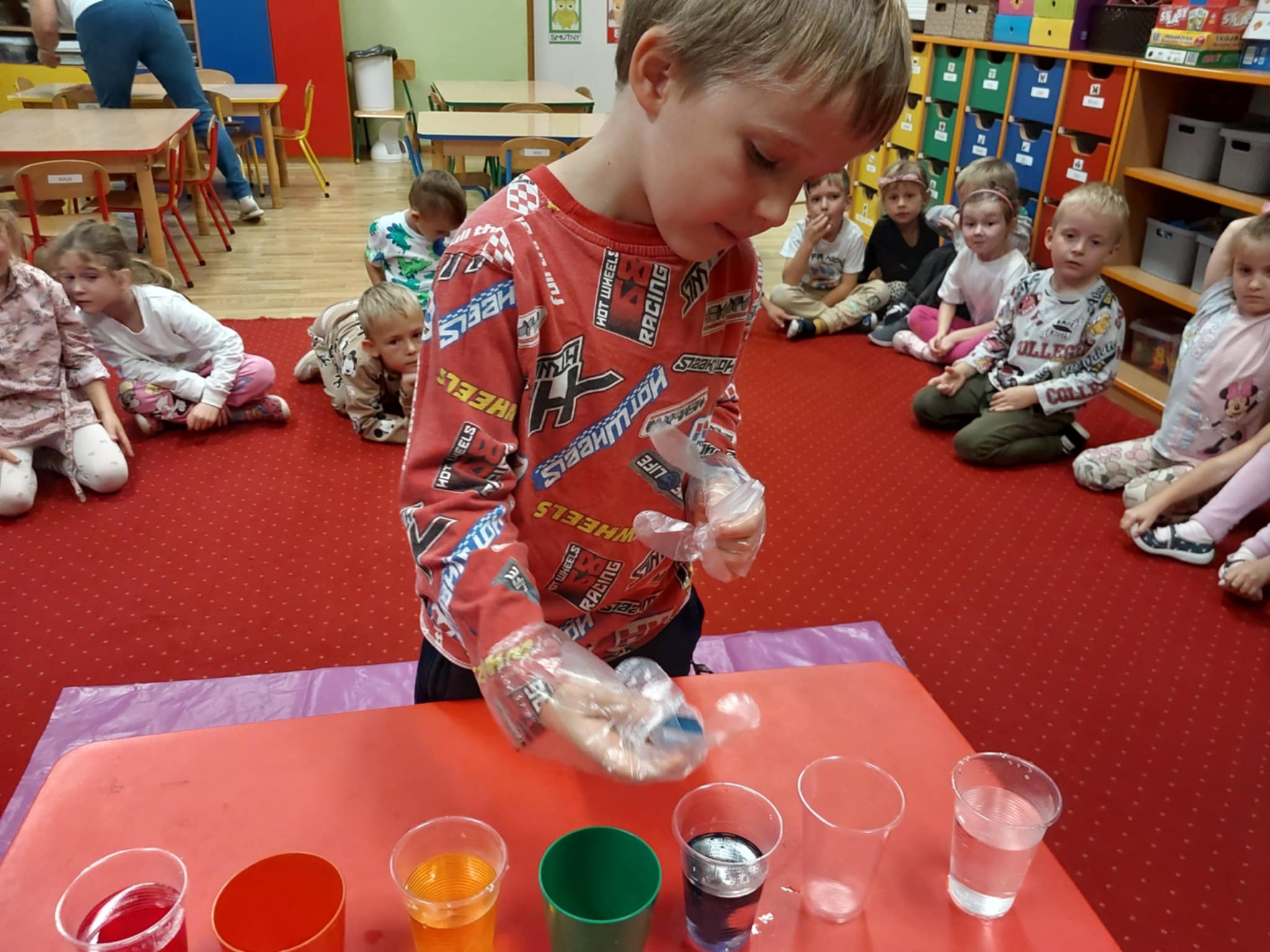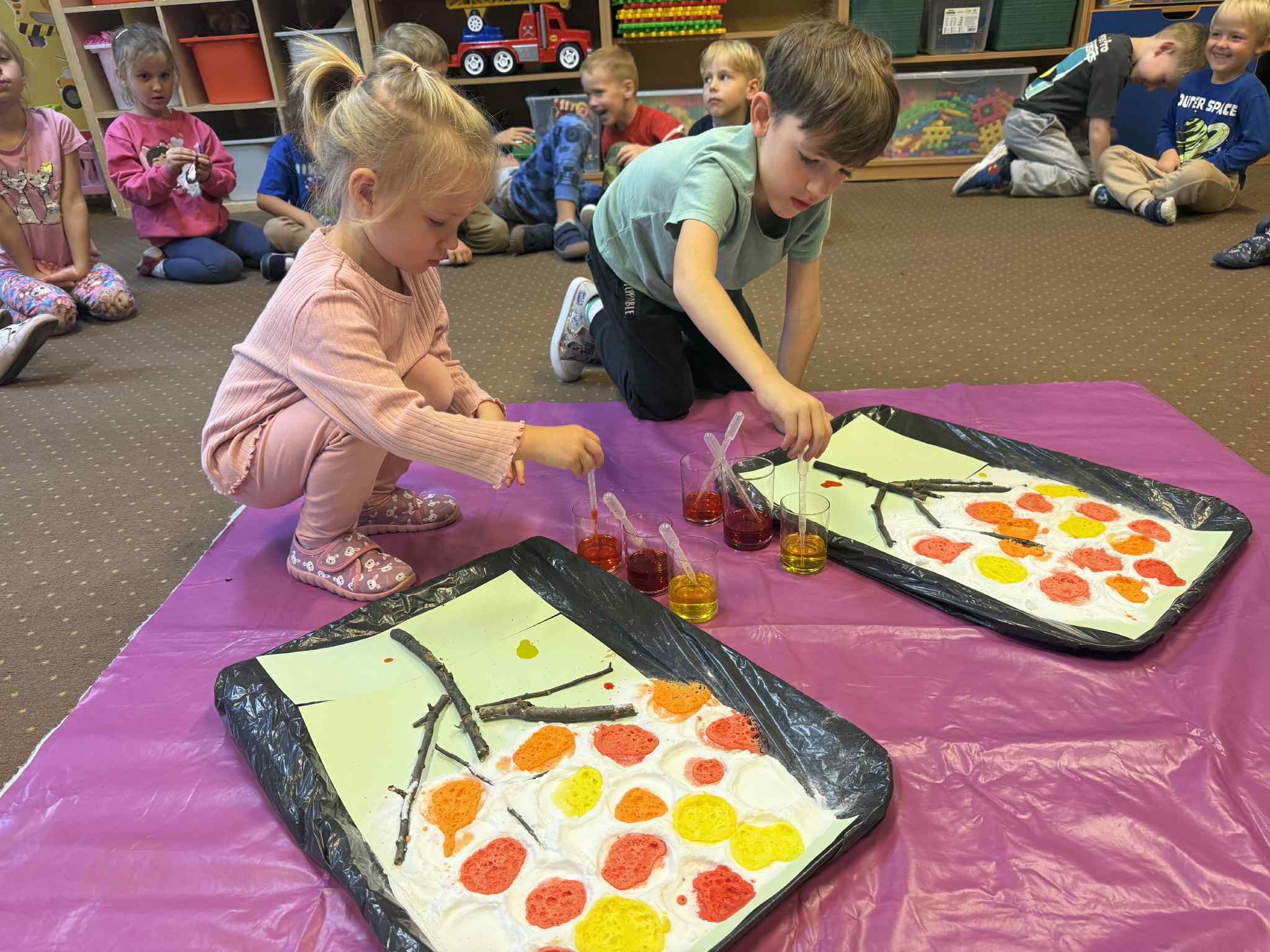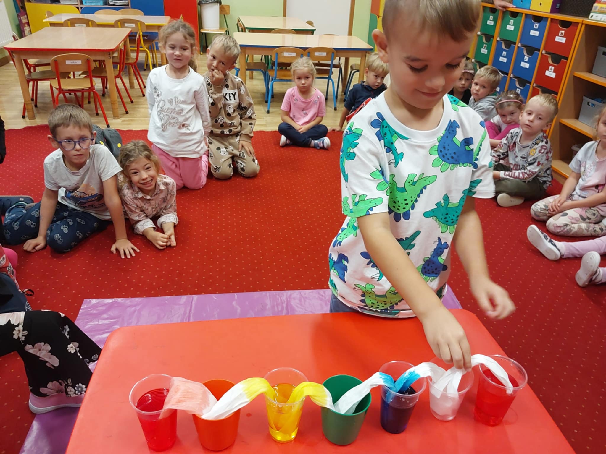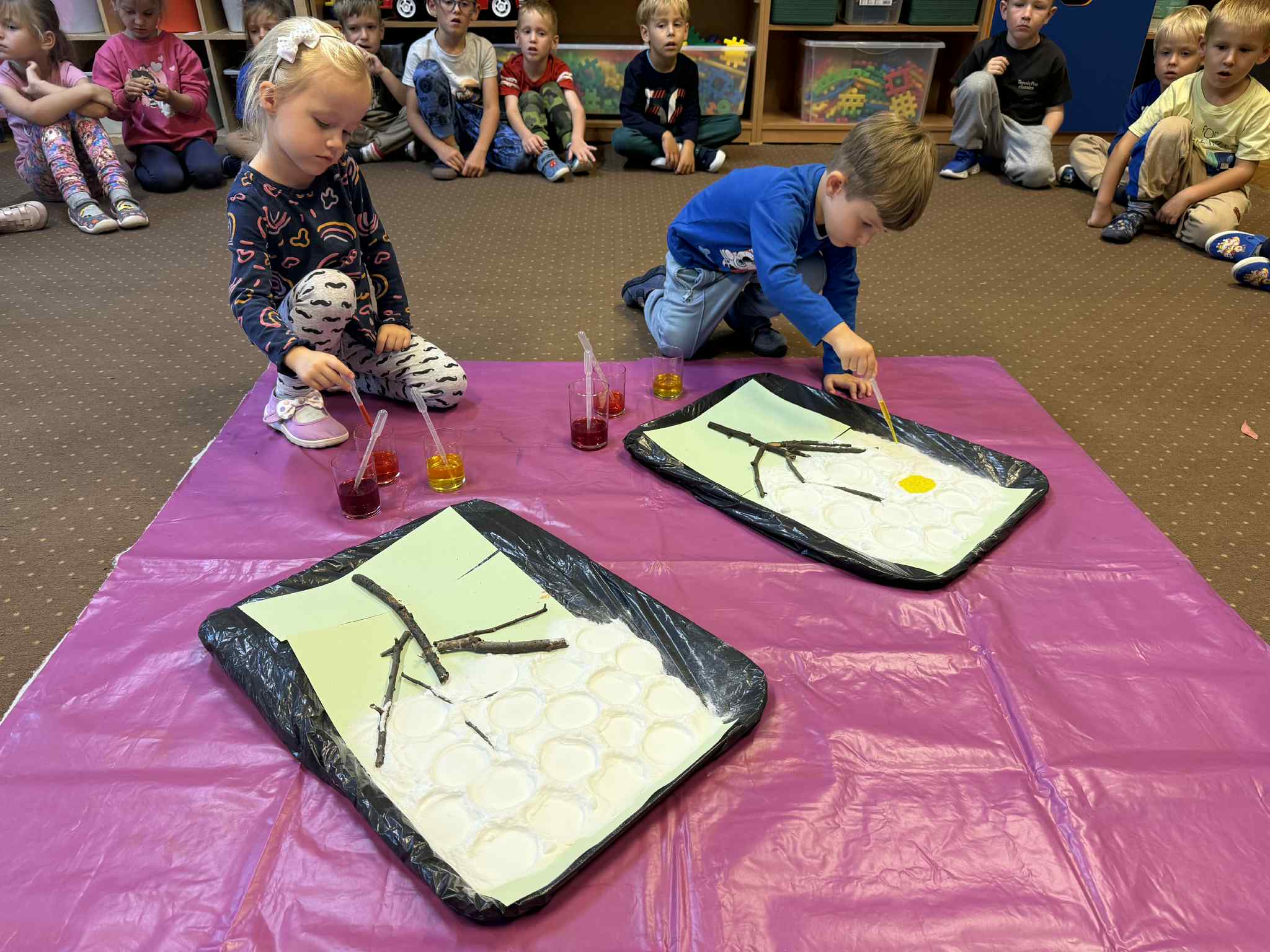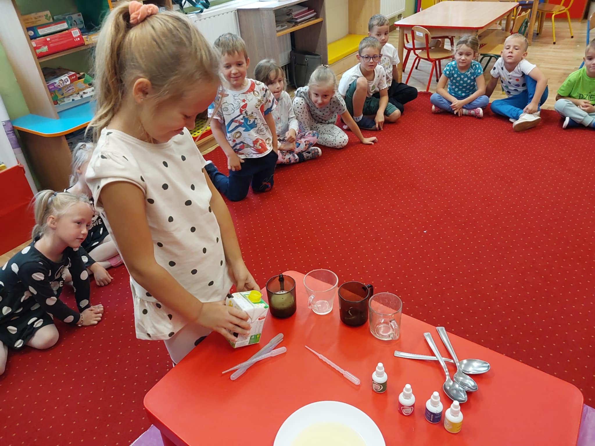 Starszaki przez cały tydzień zamienili swoją sale w dziecięce laboratorium i eksperymentowali z różnymi substancjami.