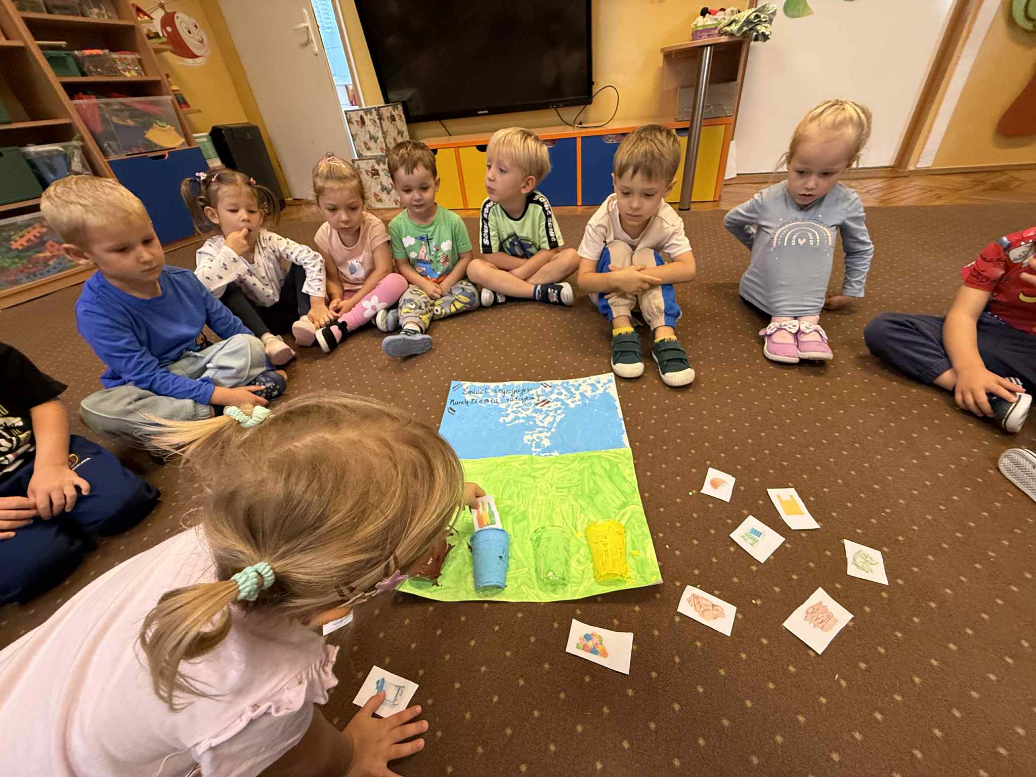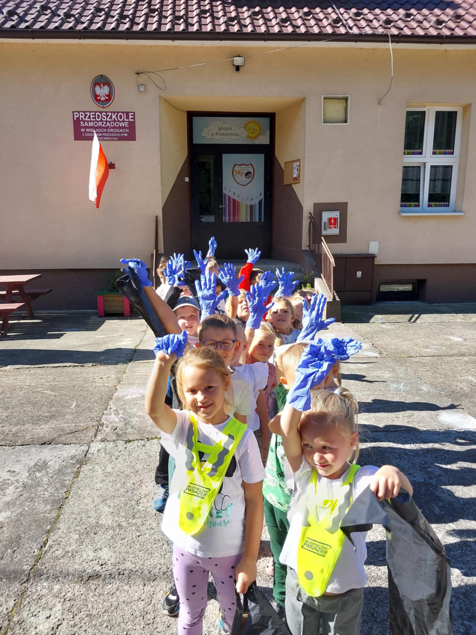Nasze Przedszkolaki 18.09 wzięli udział w ogólnopolskiej akcji "Sprzątanie Świata". Zanim wyruszyliśmy w teren, dzieci wysłuchały krótkiej prelekcji na temat segregacji śmieci i wykonały prace plastyczne związane z ekologią. Następnie, wyposażone w rękawiczki i worki, przedszkolaki ruszyły w okolice przedszkola, aby wspólnie posprzątać najbliższe otoczenie. Dzięki temu dzieci nie tylko zadbały o czystość, ale także uczyły się odpowiedzialności za środowisko.