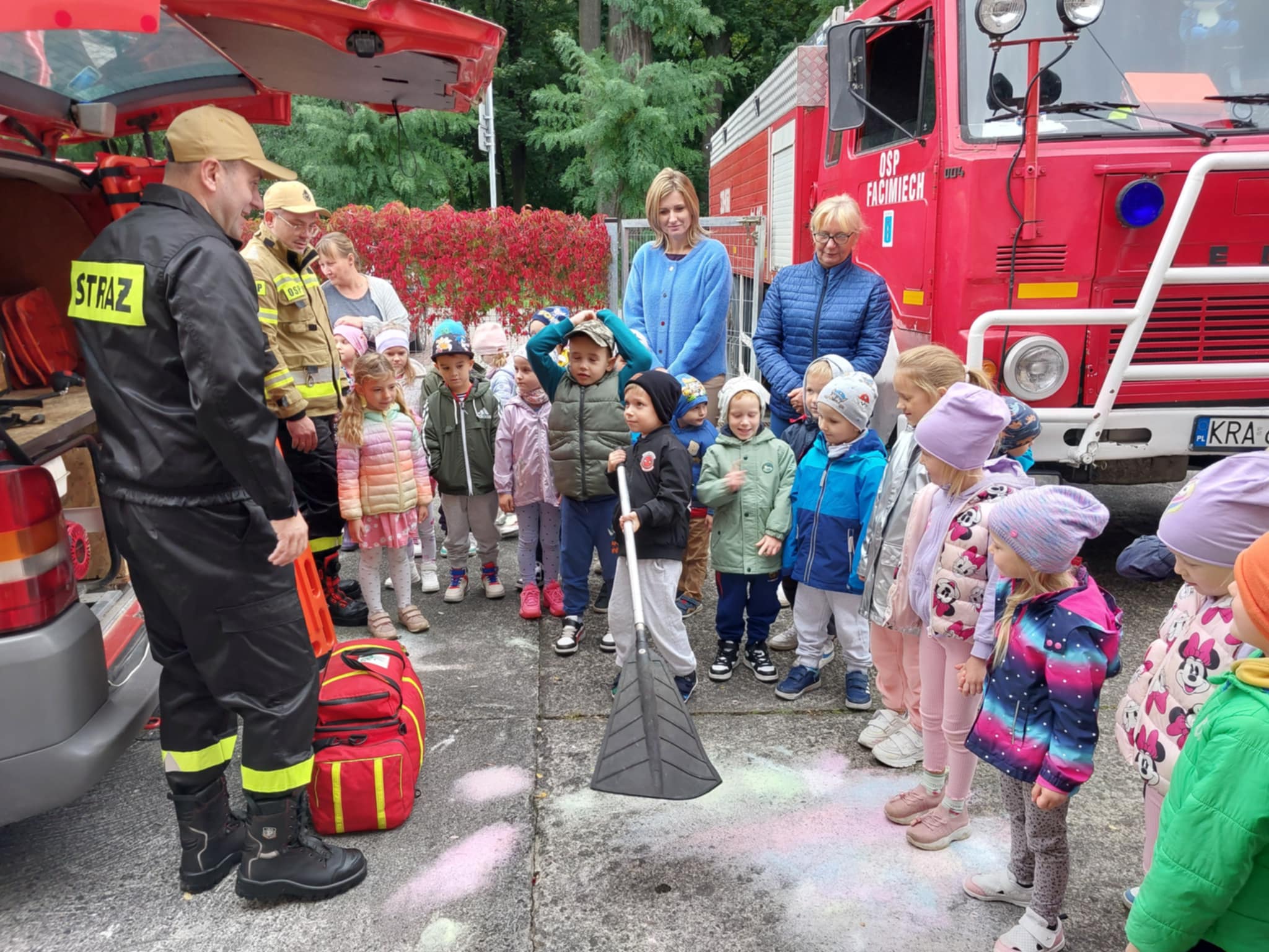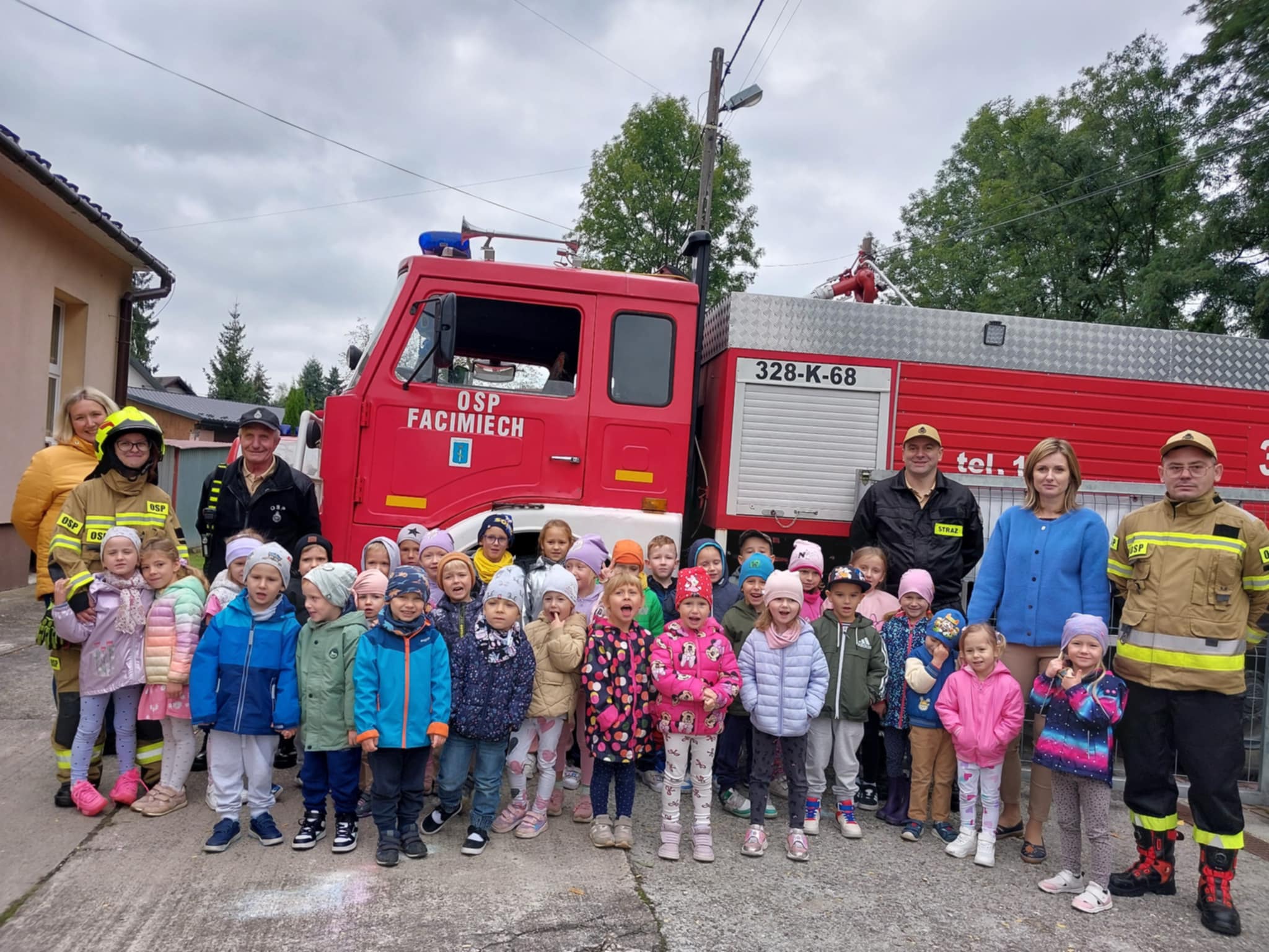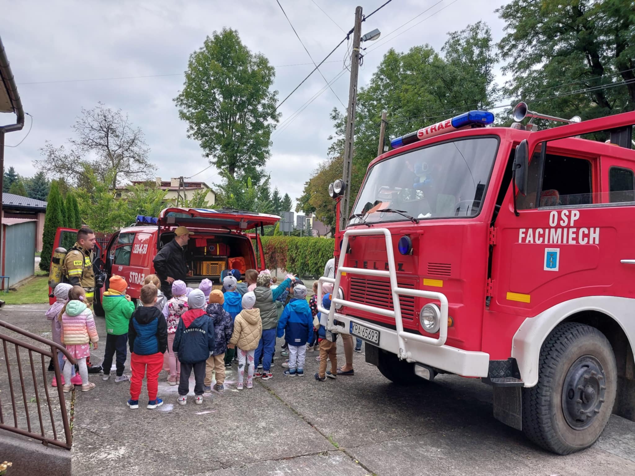 25.09 w naszym przedszkolu strażacy z OSP Facimiech przeprowadzili próbną ewakuację. Co roku we wrześniu przedszkolaki uczą się zasad zachowania w sytuacjach zagrożenia. Dzieci obejrzały również samochody strażackie i ich bogate wyposażenie.