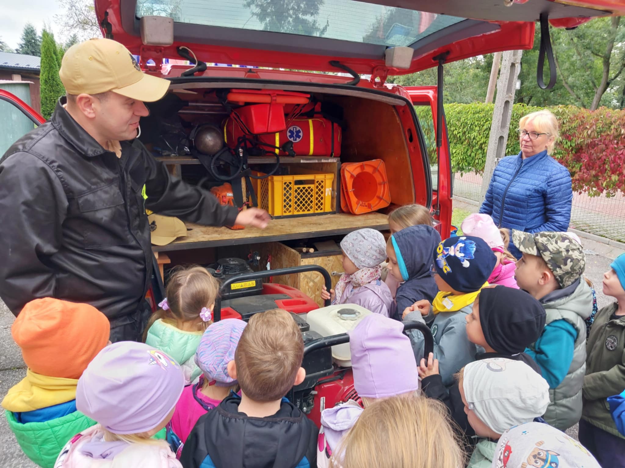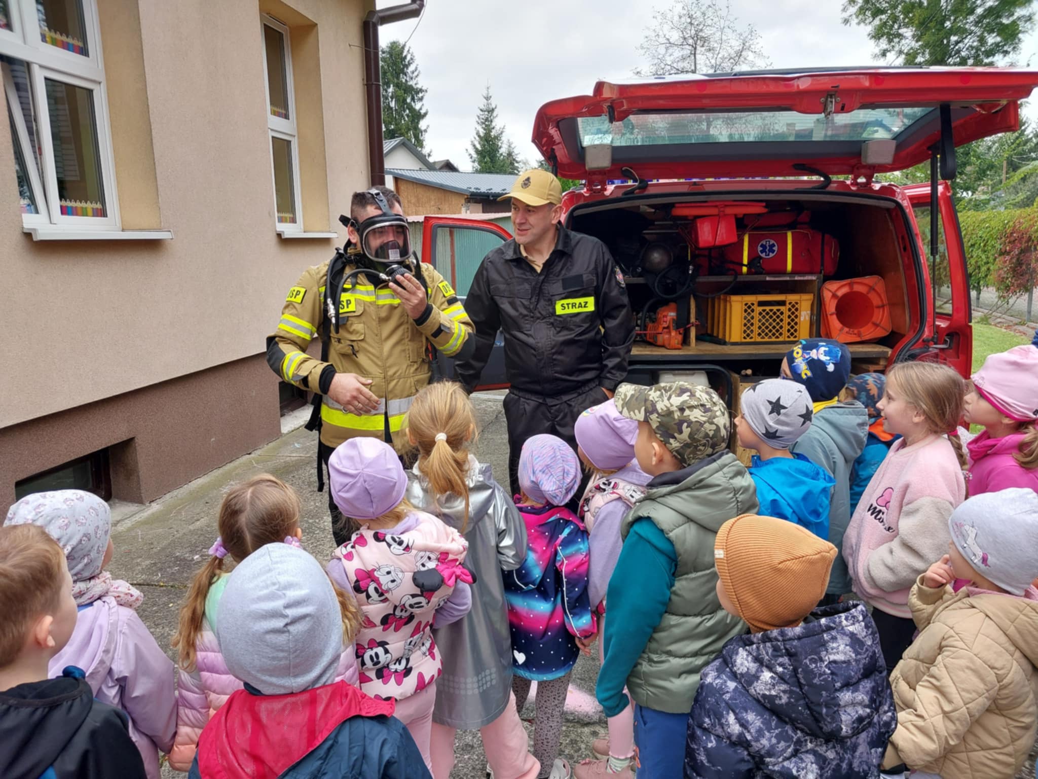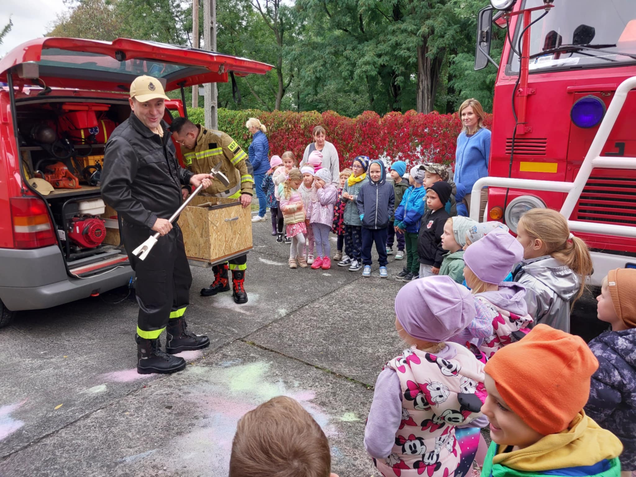 25.09 w naszym przedszkolu strażacy z OSP Facimiech przeprowadzili próbną ewakuację. Co roku we wrześniu przedszkolaki uczą się zasad zachowania w sytuacjach zagrożenia. Dzieci obejrzały również samochody strażackie i ich bogate wyposażenie.