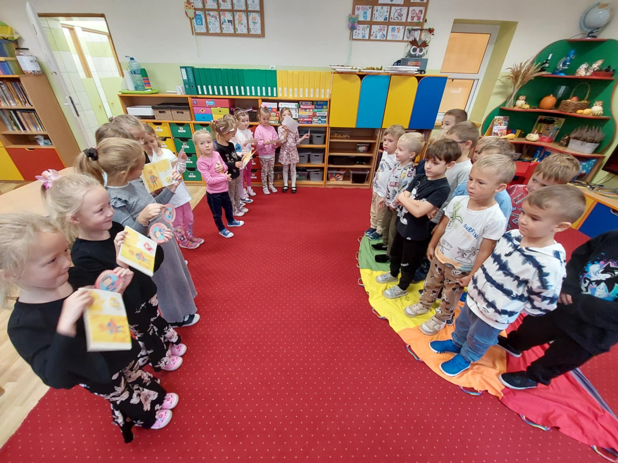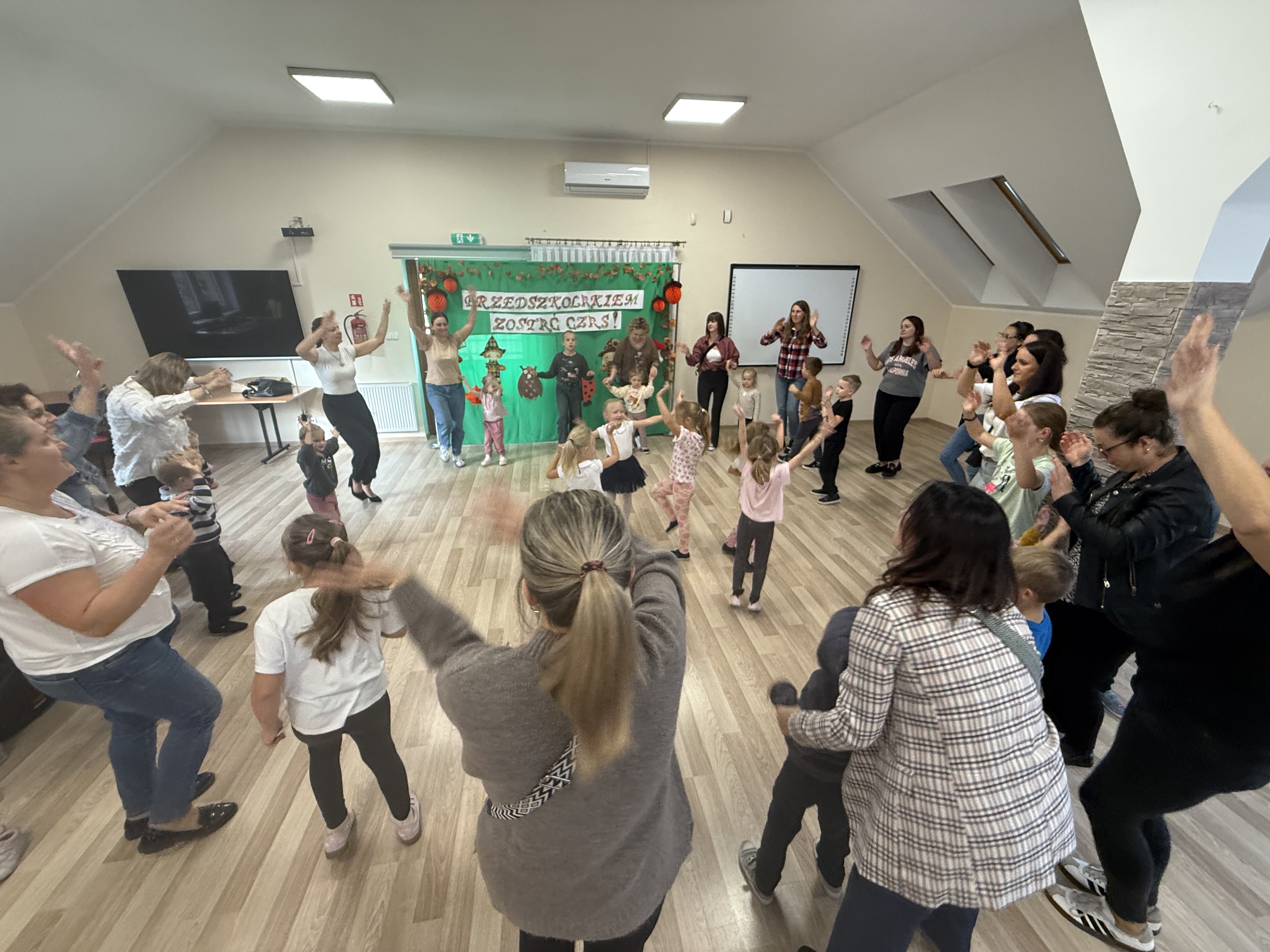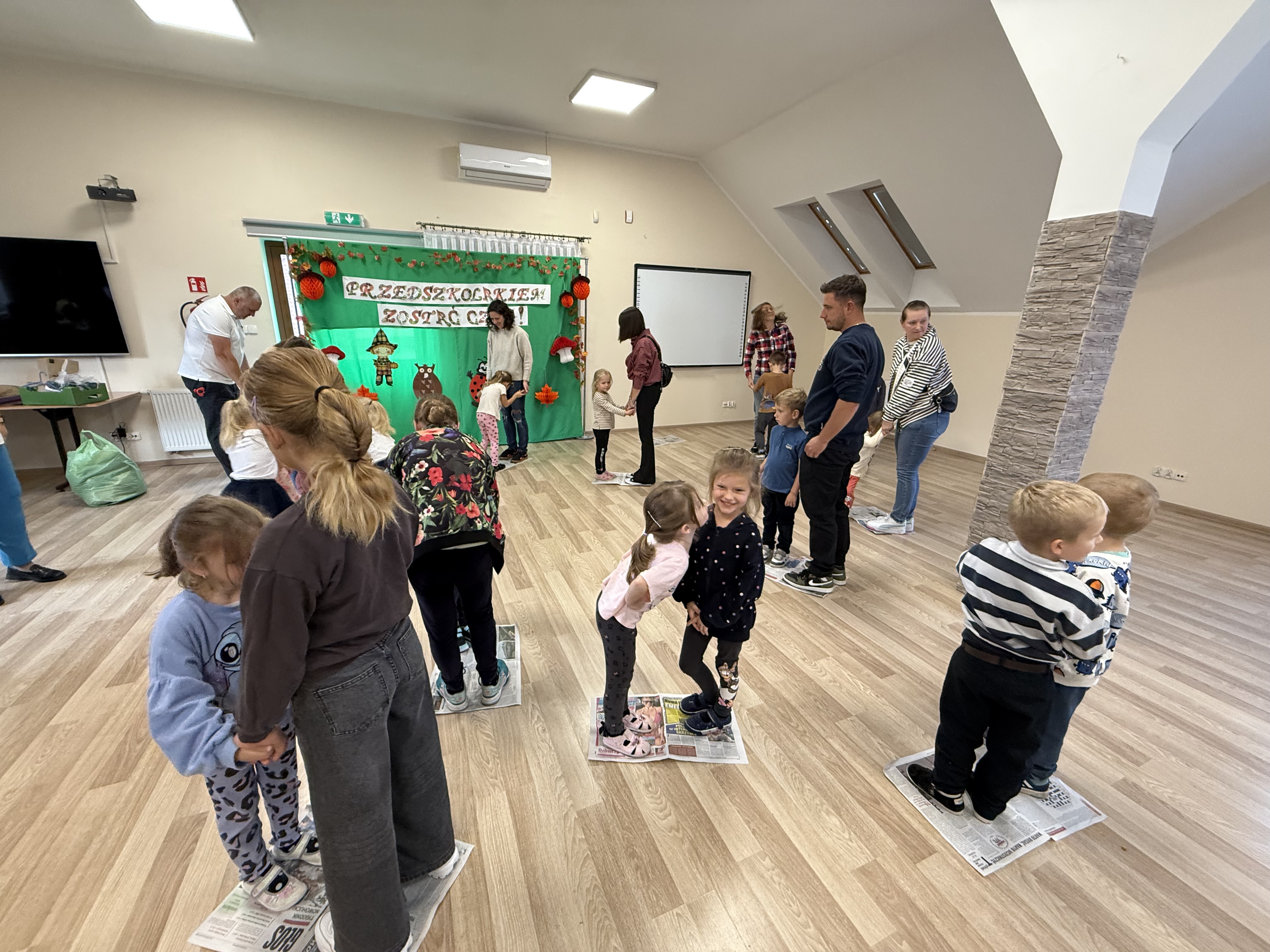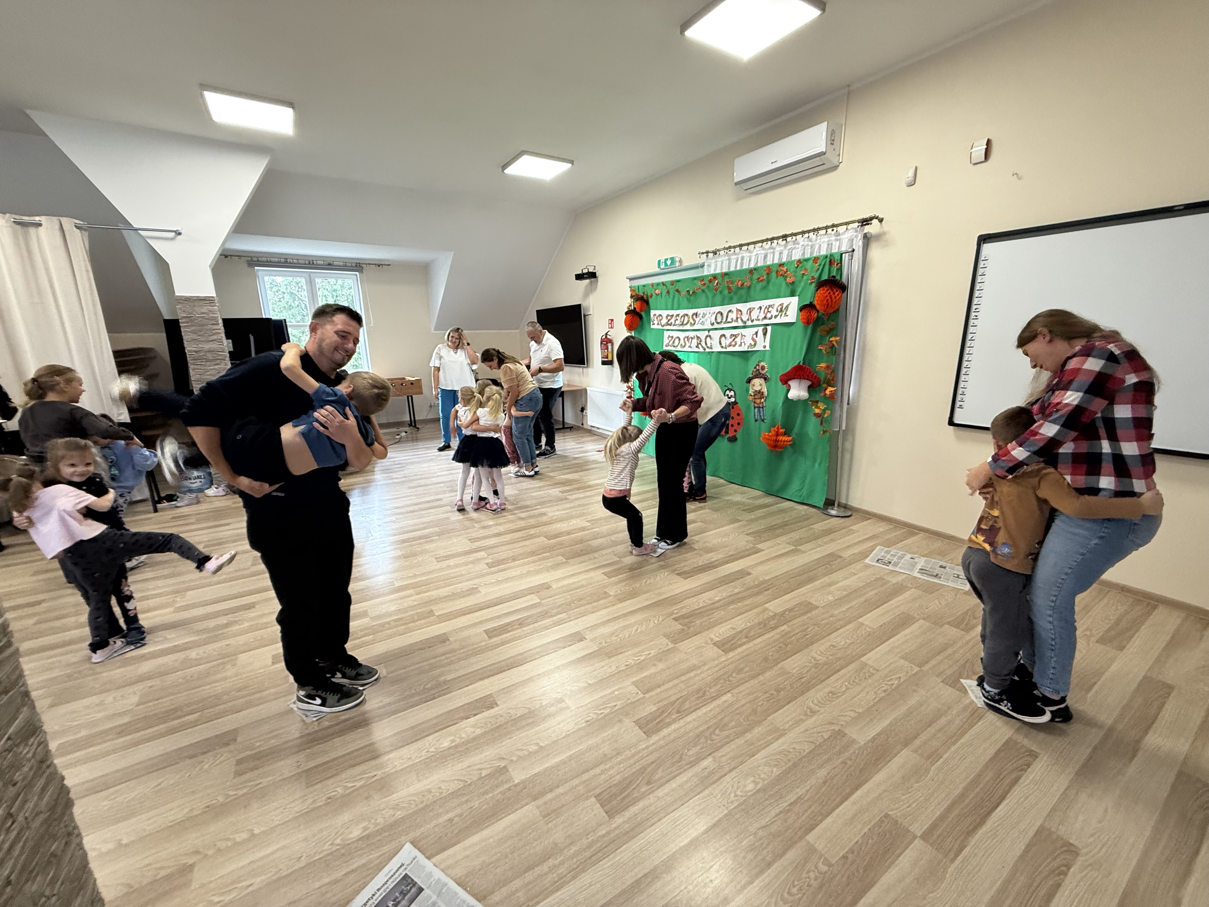 28.09 w Naszym Przedszkolu odbyło się Spotkanie Integracyjne z rodzicami pt.: "Wszyscy Polacy to jedna Rodzina - Polskie Smaki". Rozpoczynając uroczystość Straszaki poprzez recytację wierszy, śpiew piosenek oraz wakacyjny taniec opowiedziały o tegorocznej nazwie swojej grupy "Kropelki". Po tych występach na scenę dzielnie wskoczyły Żabki. Maluszki recytując wiersze, śpiewając piosenkę oraz tańcząc zwariowany taniec żabek dotarły do ważnego momentu jakim jest Pasowanie na Przedszkolaka. Po części oficjalnej dzieci wraz z rodzicami wzięli udział w różnorakich konkurencjach, zabawach ruchowych, quizach oraz konkursie lepienia pierogów. Uroczystość uświetniły także potrawy nawiązujące do tematu Polskie Smaki, przygotowane przez rodziców oraz wystawa jesiennych stroików. Bardzo serdecznie dziękujemy rodzicom za wspaniale spędzony czas, zaangażowanie i pomoc!