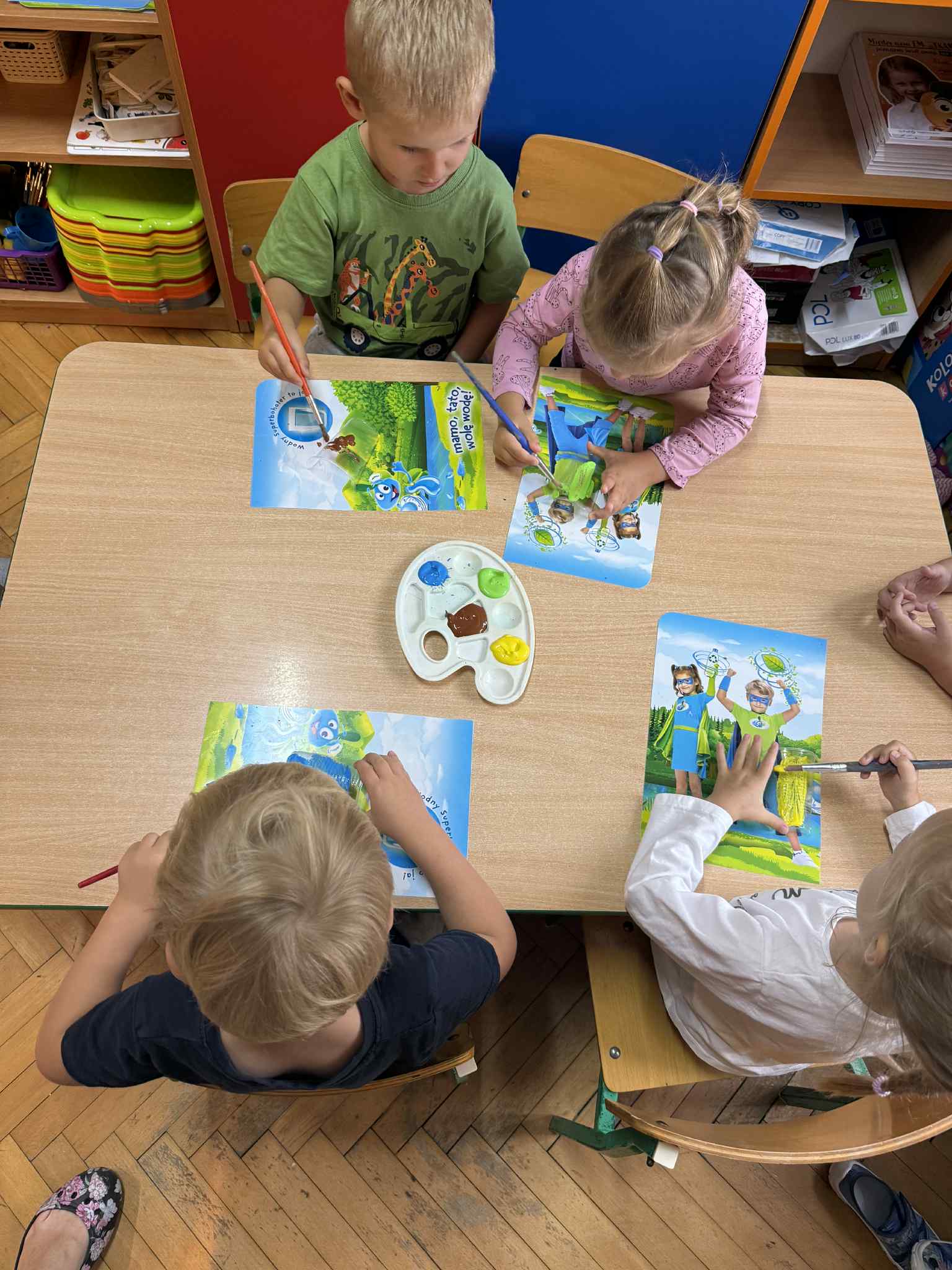 20 kwietnia w naszym przedszkolu odbyły się warsztaty "Papieru czerpanego - wyprawa do Chin" finansowane z funduszy Rady Rodziców. Przedszkolaki zapoznały się z różnymi rodzajami papieru, poznały historię powstania papieru, a na koniec same mogły wziąć udział w tworzeniu papieru czerpanego, który później samodzielnie ozdabiały.