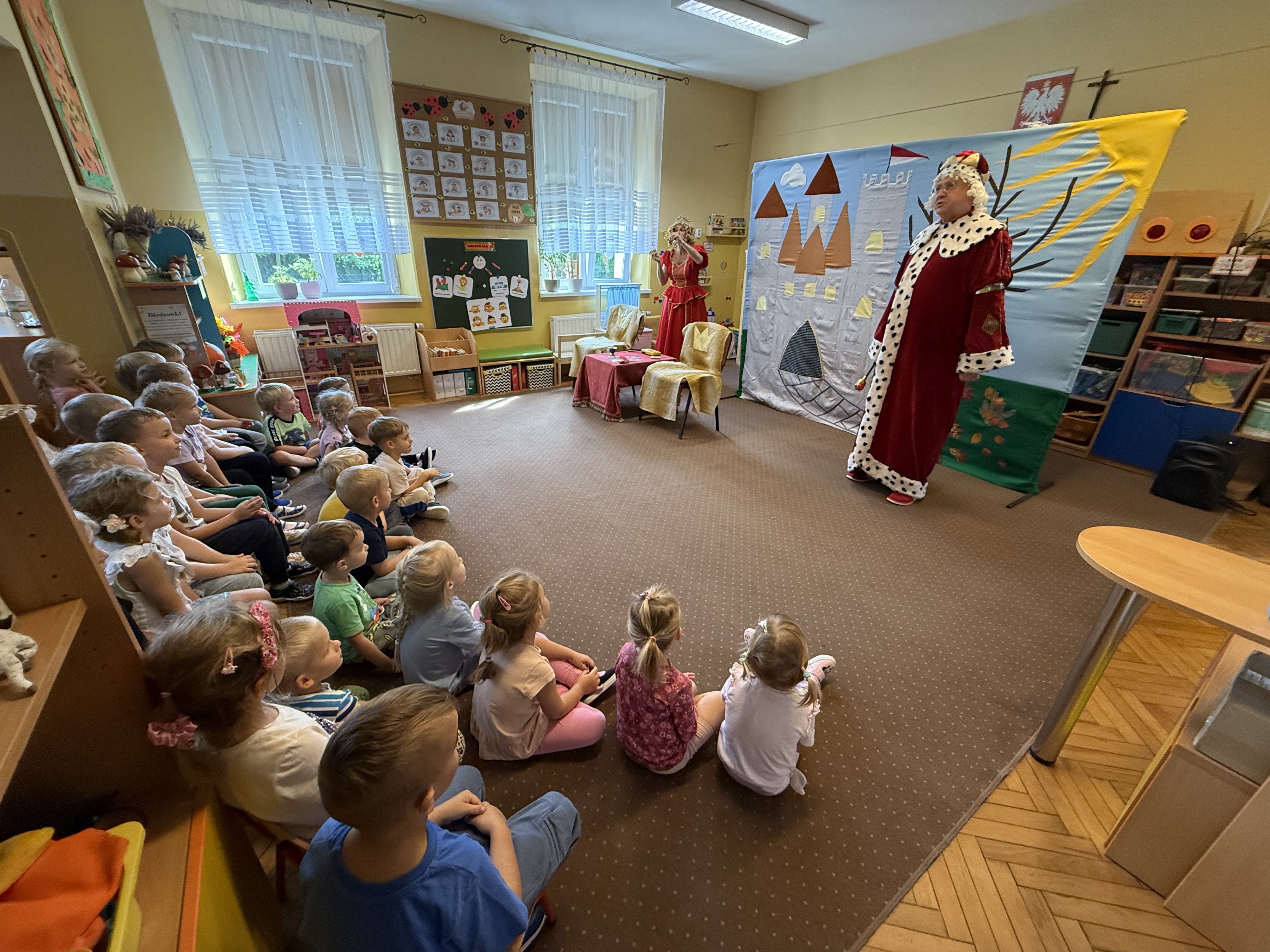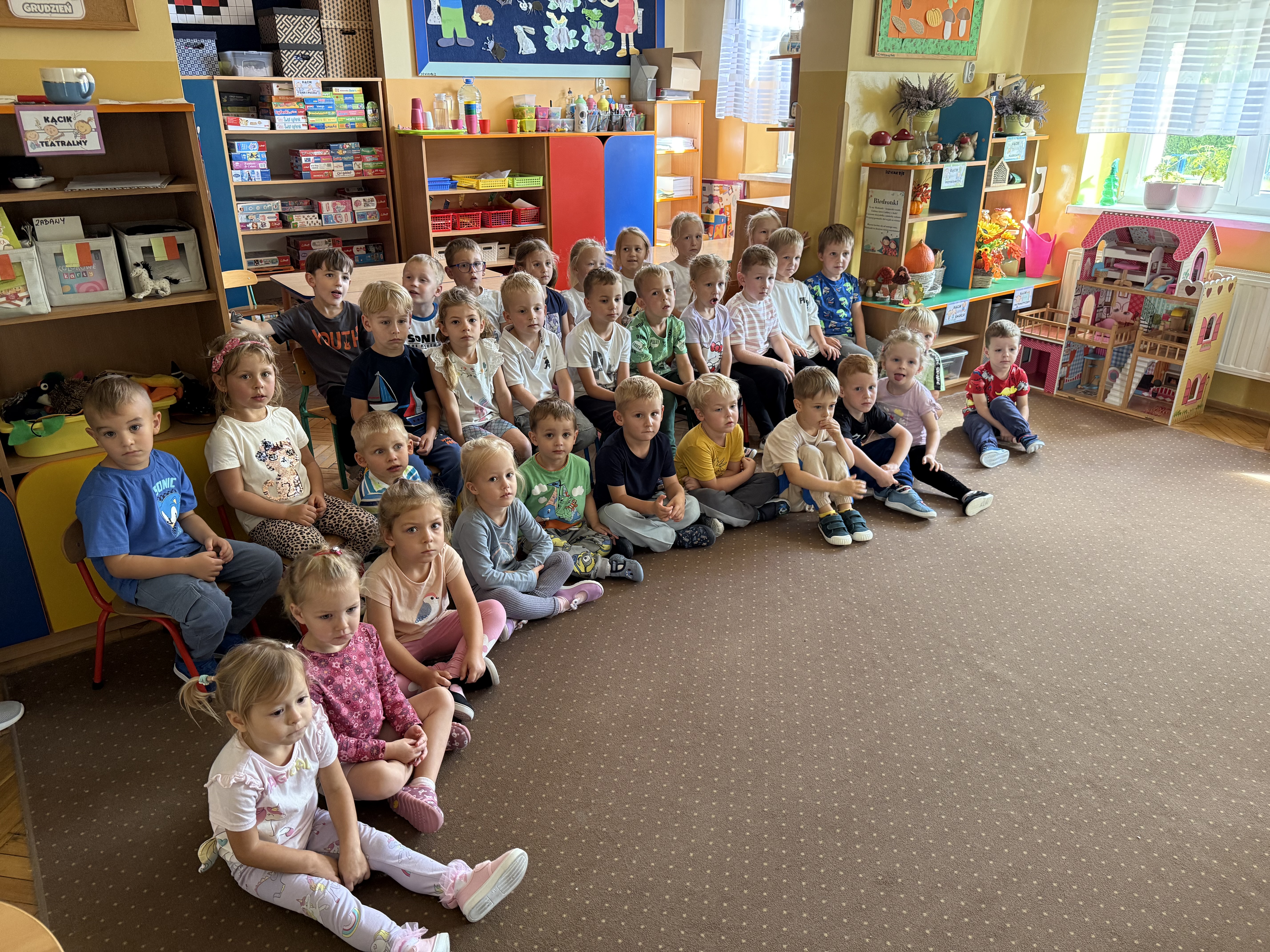 Nasze przedszkole 18.09 odwiedził także Teatr Kalejdoskop z barwnym spektaklem pt.: „W świecie Brunlandii”. Dzieci z zainteresowaniem śledziły losy bohaterów, aktywnie uczestniczyły w przedstawieniu i świetnie się bawiły. Była to nie tylko okazja do spotkania ze sztuką, ale także wartościowa lekcja przyjaźni i współpracy.