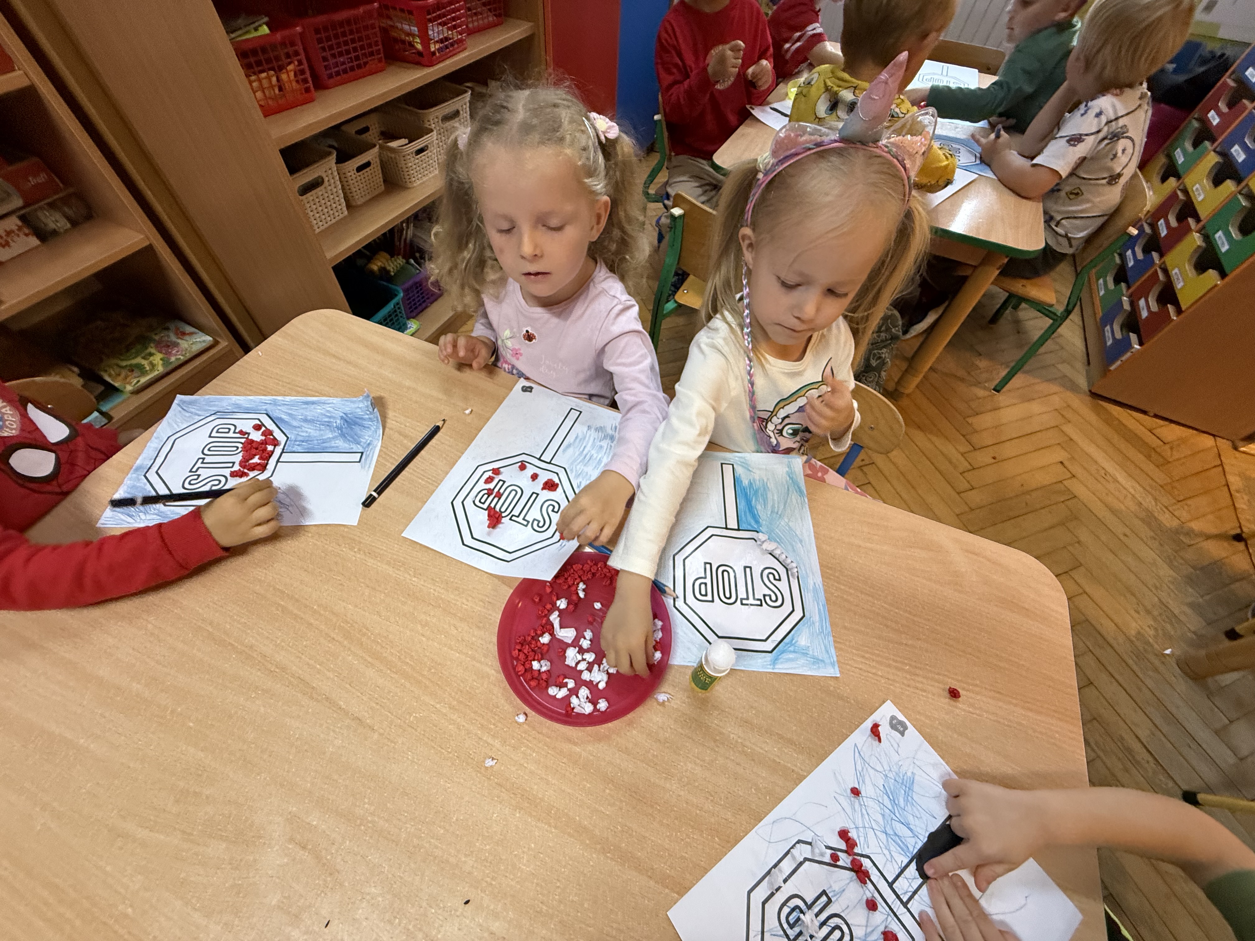 Biedroneczki w ostatnim tygodniu września wzięły udział w Ogólnopolskim Projekcie pt.: "Bezpieczna zabawa=mądra zabawa" organizowanym przez Fundację Centrum Mądrej Zabawy. Przedszkolaki dowiadywały się jak być bezpiecznym na drodze, podczas jazdy autobusem, rowerem czy samochodem poprzez różnorodne zabawy, działania plastyczne, słuchanie audiobooków oraz spacer w poszukiwaniu przejścia dla pieszych i znaków drogowych. Podsumowując zdobytą wiedzę odbył się quiz, podczas którego dzieci z ogromnym zaangażowaniem odpowiadały, co najważniejsze prawidłowo na pytania. :)