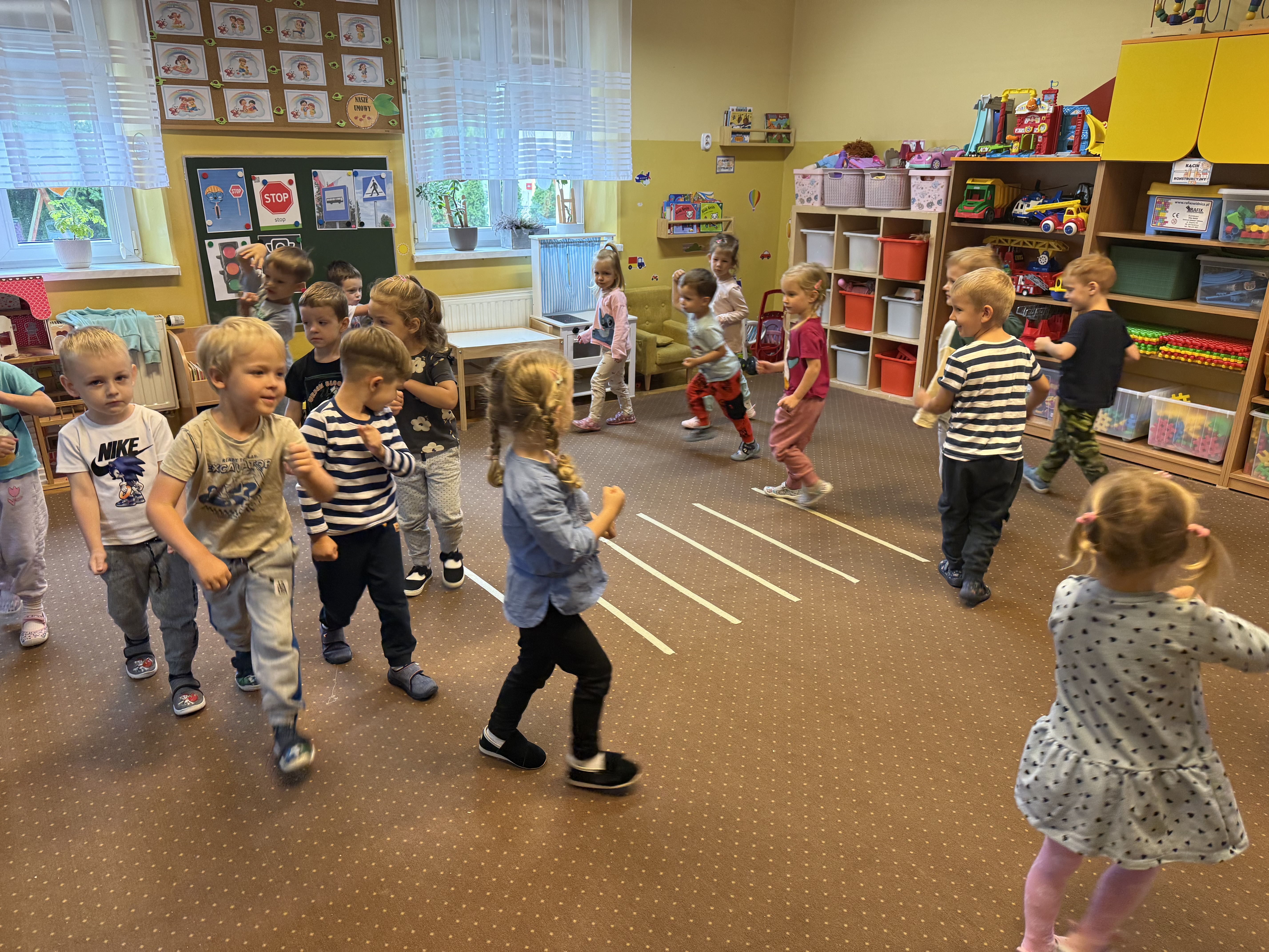 28 października sala Kropelek na chwilę zamieniła się w Stadion Narodowy, a przedszkolaki w zawodników reprezentacji. Niestety pogoda nie pozwoliła na prawdziwy maraton na świeżym powietrzu, lecz Kropelki wcale się nie poddały. Uczestnicząc w różnego rodzaju konkurencjach sportowych wykazały się niezwykła sprytnością i sprawnością fizyczną. Na samym początku złożyły obietnice prawdziwego sportowca o przestrzeganiu zasady fair play, oraz ułożyły własne hasła, którymi podczas konkurencji dopingowały swoje drużyny. Nie zabrakło haseł takich jak: „Polska biało czerwoni”, „Polska gola”, „Ole ole nie damy się” czy „Do boju, dziś Polska górą jest”. Konkurencje zakończyły się uroczystym odśpiewaniem hymnu i ogłoszeniu wyników.
