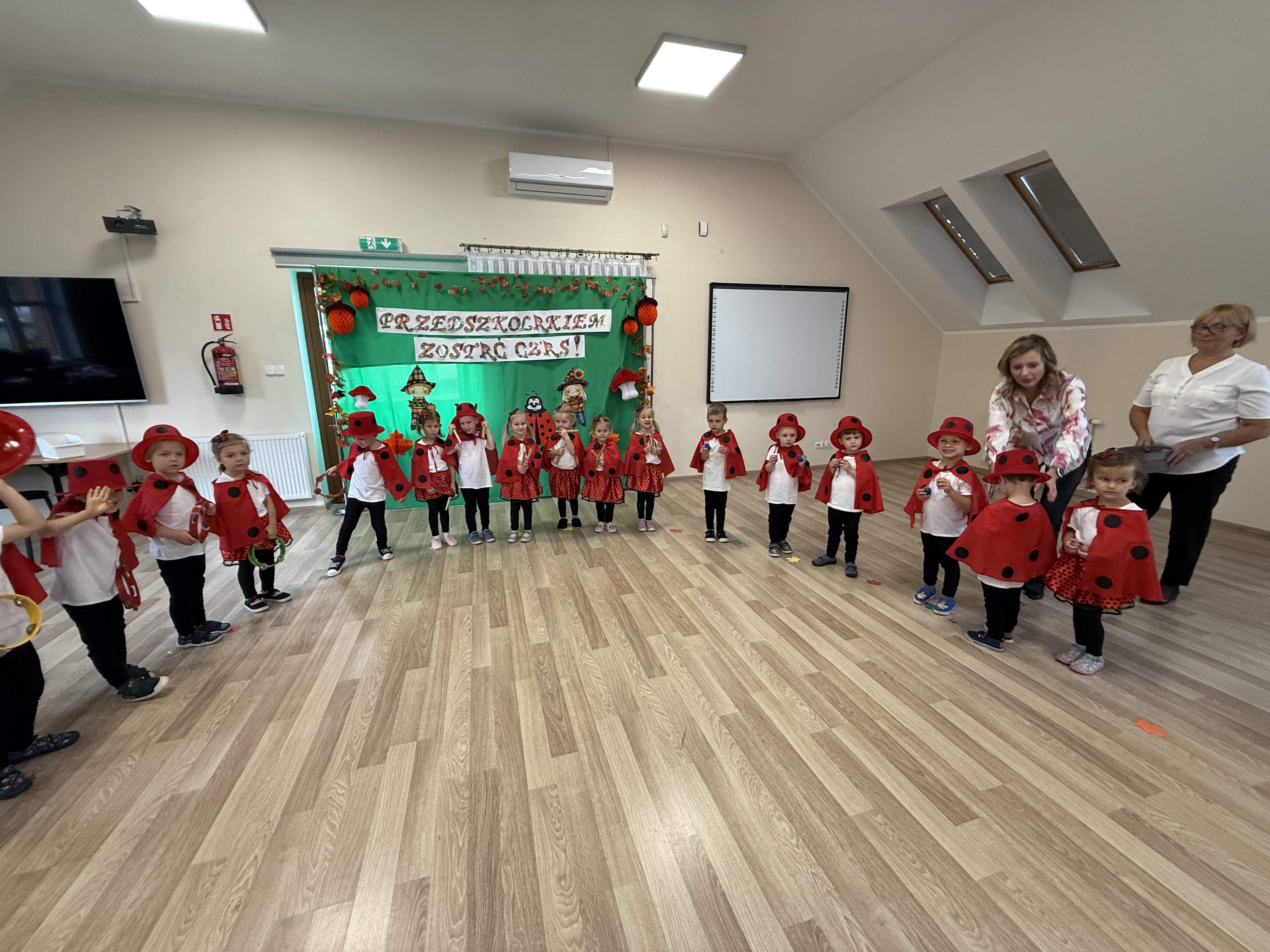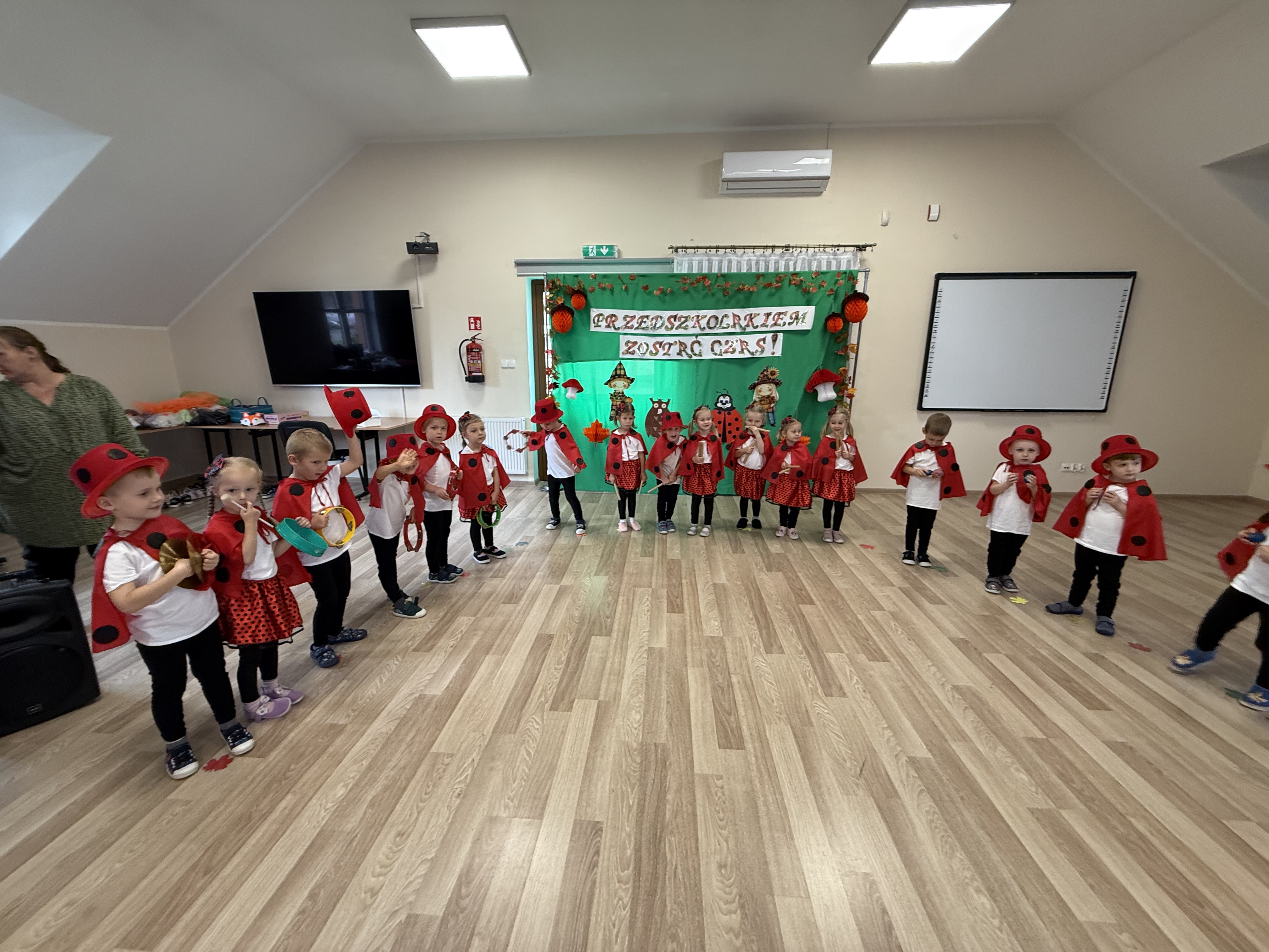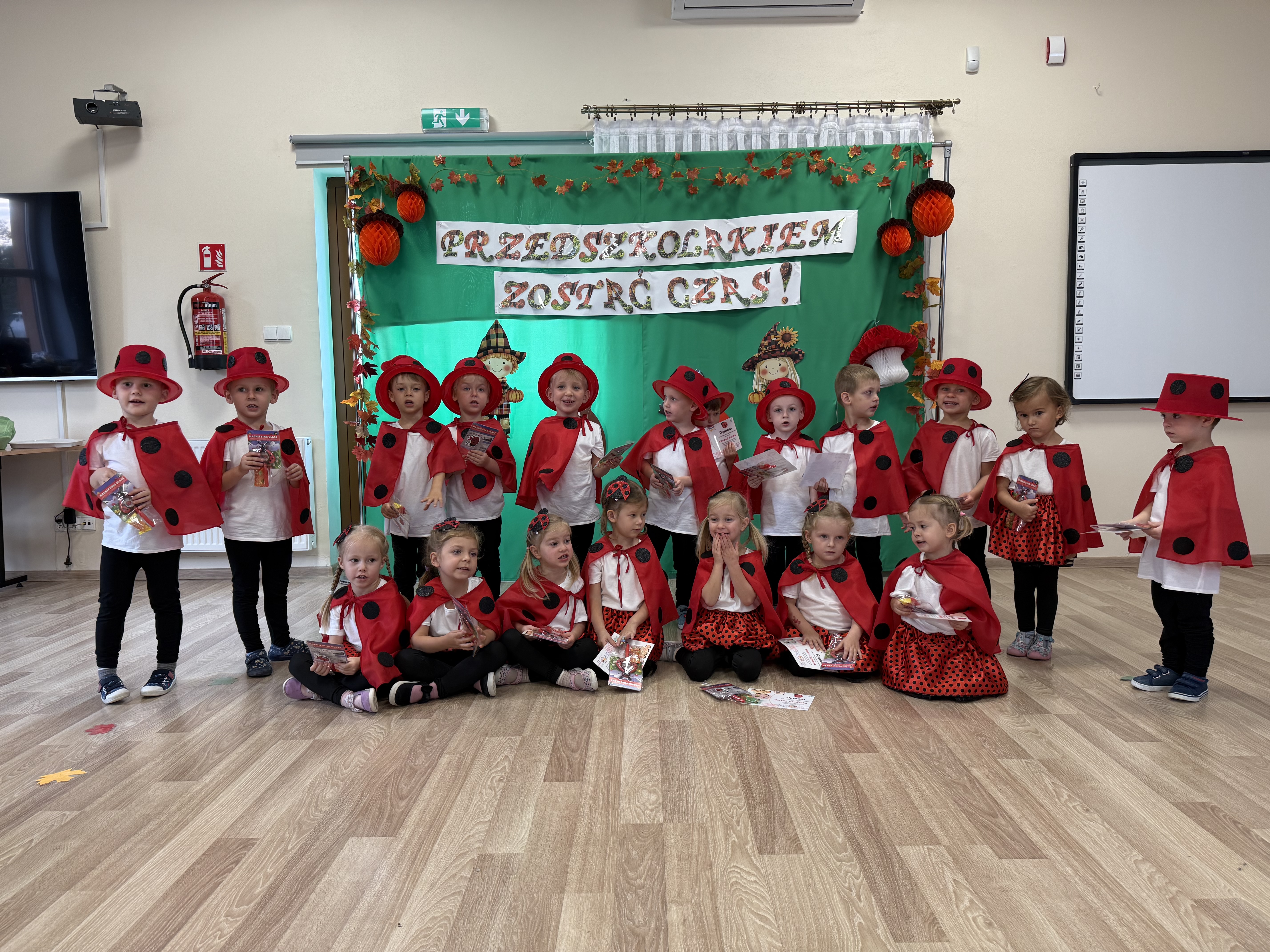 Dzień pasowania na przedszkolaka był wyjątkowym świętem dla naszych najmłodszych! Uroczystość rozpoczął występ Starszaków Sówek, którzy zaprezentowali piękną jesienną opowieść, wprowadzając wszystkich w ciepły, jesienny nastrój. Następnie na scenie pojawiły się Maluszki Biedroneczki – bohaterowie tego dnia. Z ogromnym zaangażowaniem recytowały wiersze, tańczyły, śpiewały piosenki i grały na instrumentach, zdobywając gromkie brawa od publiczności. Kulminacyjnym momentem wydarzenia było uroczyste pasowanie na przedszkolaka, którego dokonała pani Wicedyrektor Kasia. Od tej chwili nasi najmłodsi oficjalnie dołączyli do grona przedszkolaków! Po części artystycznej nie zabrakło słodkiego poczęstunku oraz wspólnych zabaw integracyjnych, które dostarczyły dzieciom mnóstwo radości i uśmiechu. To był naprawdę niezapomniany dzień, pełen emocji, wzruszeń i wspólnej zabawy!