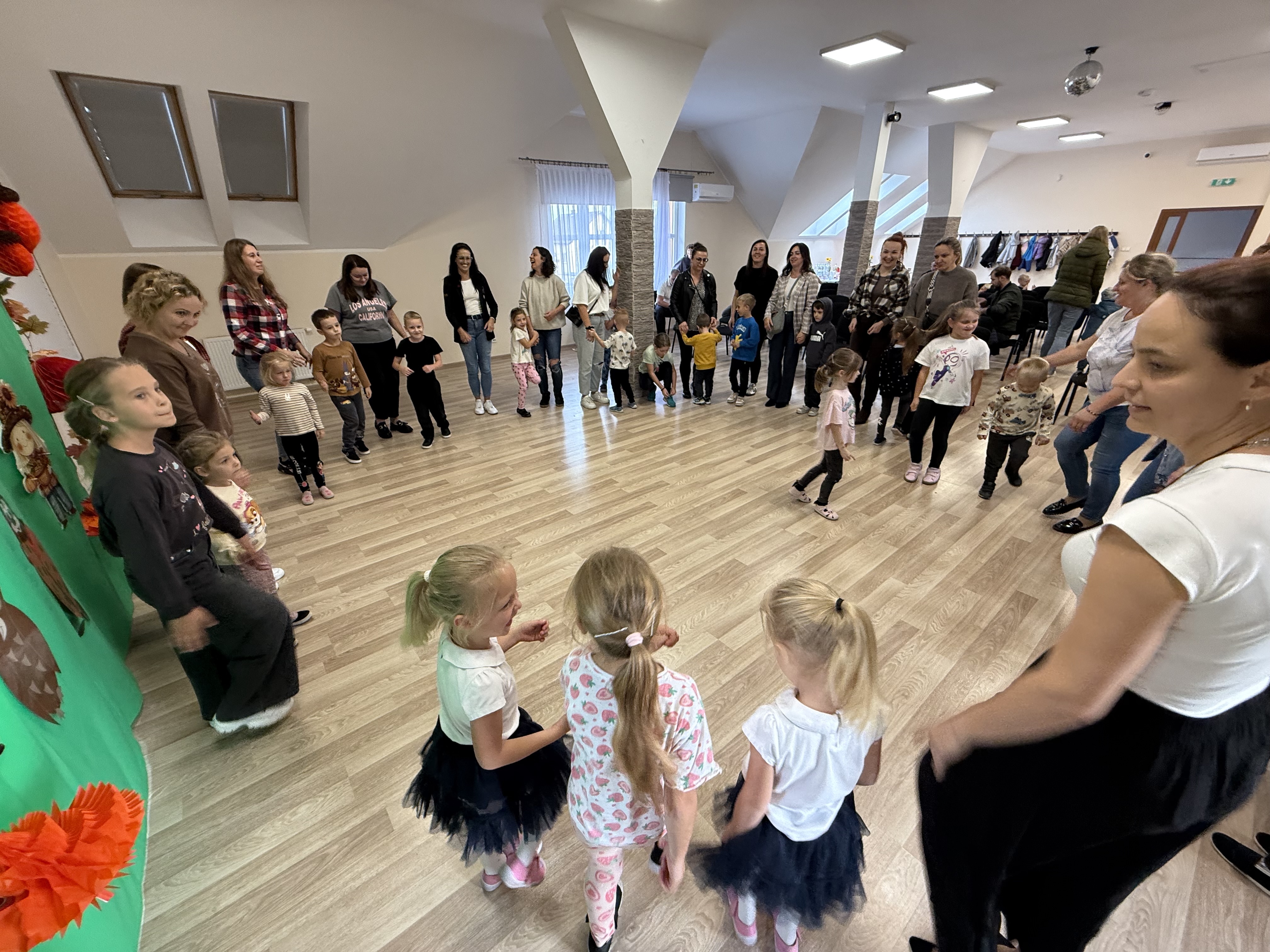 Po części artystycznej zaprosiliśmy gości na wspólny poczęstunek przygotowany przez rodziców, który sprzyjał rozmowom i miłej atmosferze. Następnie odbyły się warsztaty rodzinne, podczas których dzieci wraz z rodzicami tworzyli symboliczne serca na plastrze brzozy – pamiątkę tego pełnego ciepła dnia.